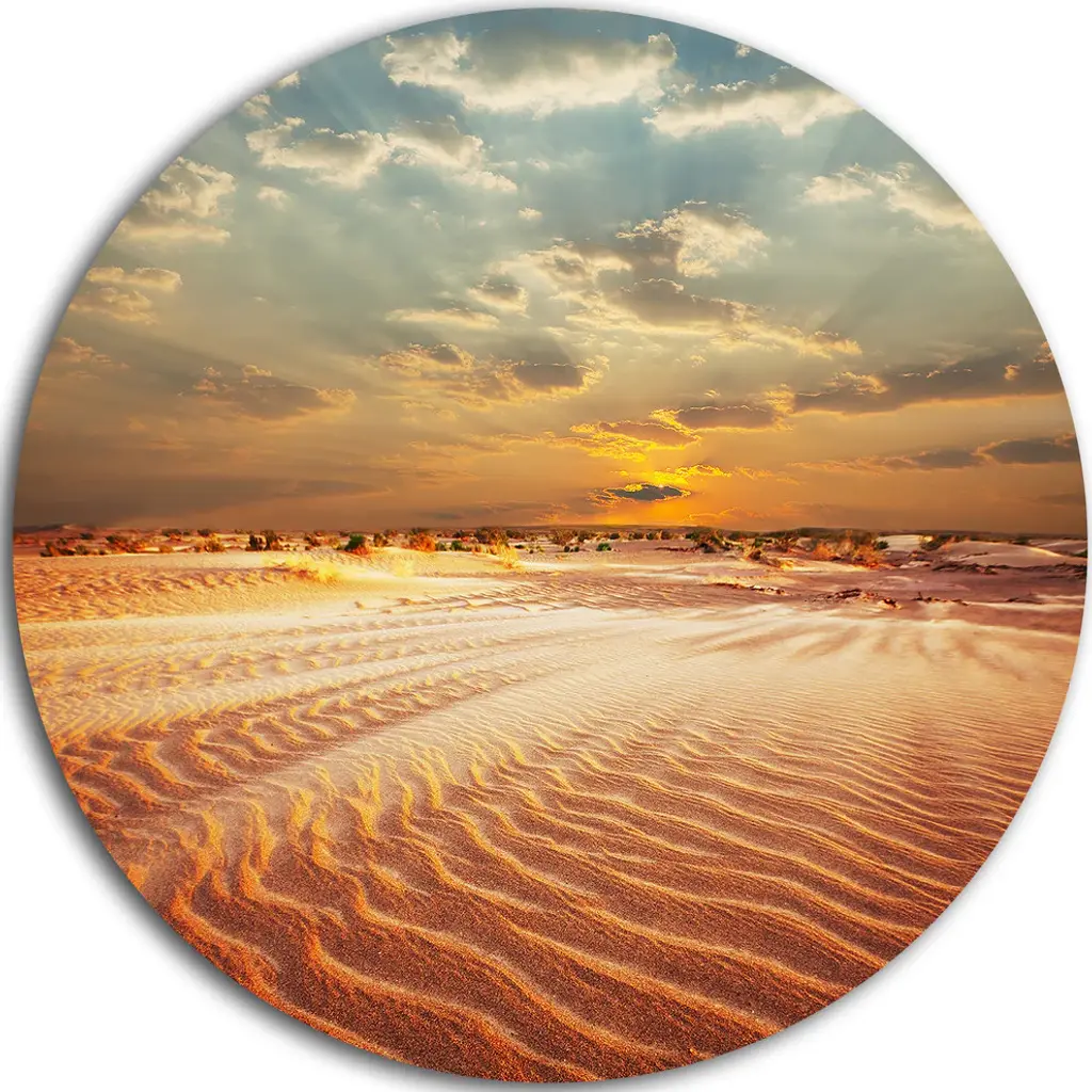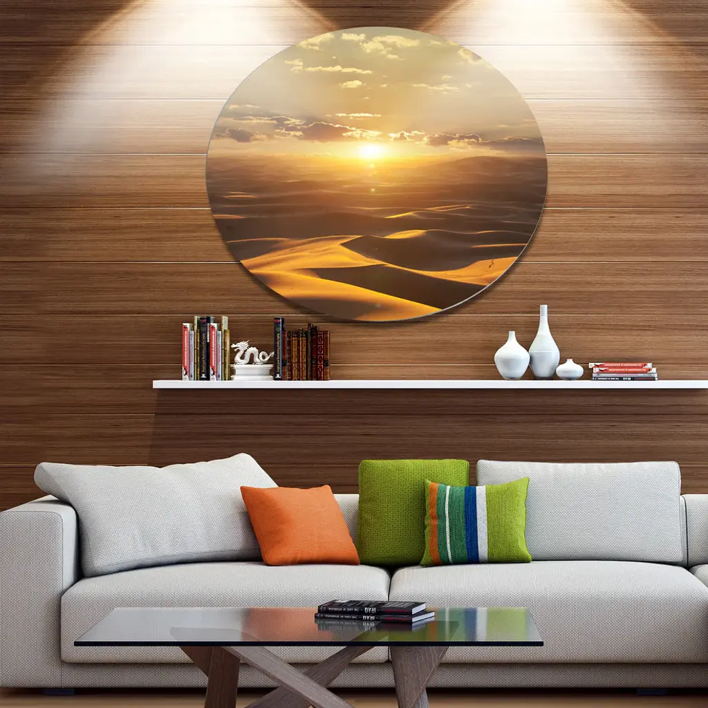 Evening Sahara Desert With Sunlight, Landscape Disc Metal Wall Art, 23"