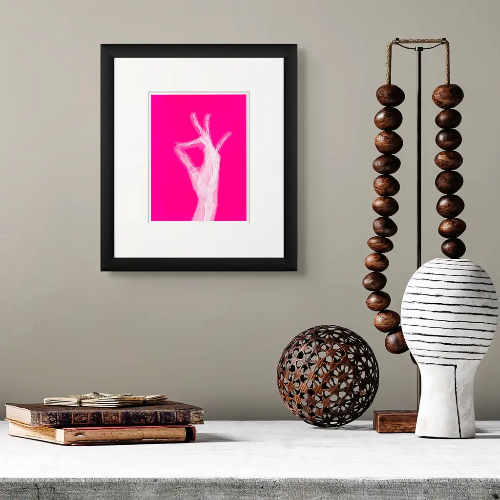 A reminder in radiant neon pink: everything really is going to be okay. This piece celebrates hope and quiet reassurance — a captured gesture radiating calm confidence and steady strength.The delicate line work of the hand contrasts with the bold backdrop, making it a true statement piece for any space. Whether placed in a home, studio, or workspace, it serves as a daily dose of optimism — a visual mantra whispering: you’ve got this.Perfect for those who believe in resilience, joy, and the art of finding light in the everyday.Featuring Everything Is Going To Be A-OKOriginal artwork created by x ilona blue.All artwork is copyright protected and remains the intellectual property of the artist.