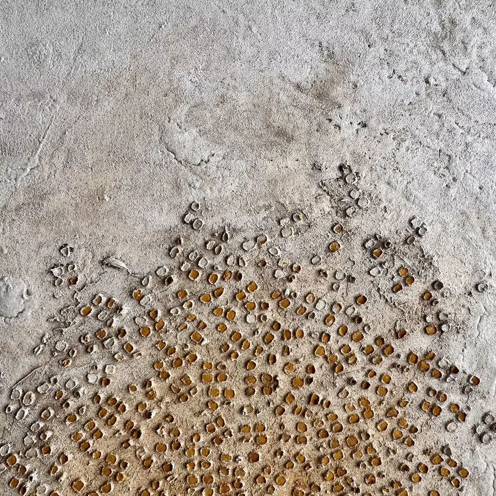 "Evoluzione" explores evolution as an unstoppable journey, represented in three distinct panels featuring diverse textures and hues. Each segment is crafted with a unique blend of resin, sand, and binders, skillfully modeled with varying raised mosaic or pixel elements. The layered colors and tactile surface emphasize the dynamic progression and transformation intrinsic to the artwork. A certificate of authenticity is included. One-of-a-kind piece.