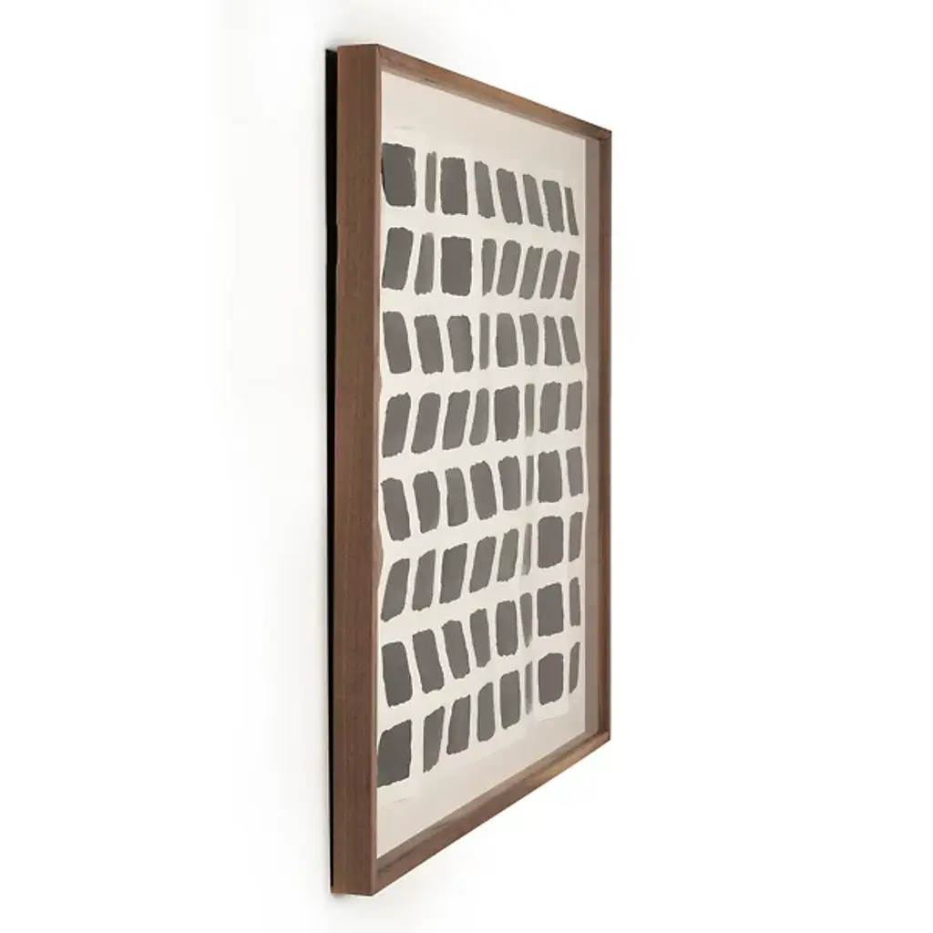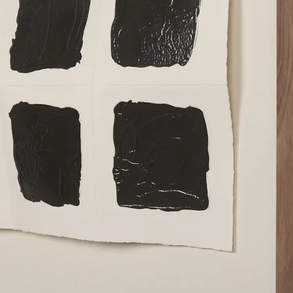 Explore the intricate details of Examine Raven Wall Art from Four Hands, a captivating creation by FH Art Studio. Handcrafted in Austin, Texas, this artwork seamlessly merges contemporary and artisanal modern styles. The textured fine art paper and tape add depth and character to the piece, portraying hand-painted black swatches with ripples and folds. The artwork is folded and loosely mounted within a rustic walnut frame, enhancing its movement and creating captivating shadows across the entire piece.