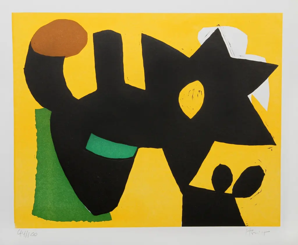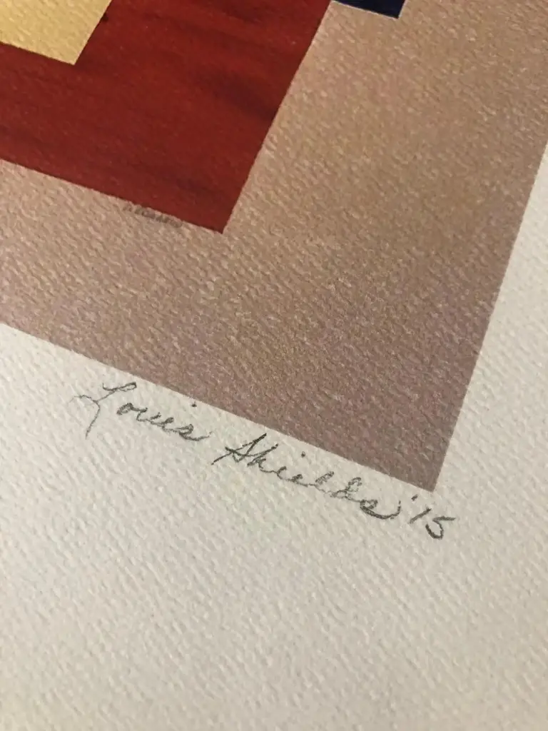 A refined exploration of spatial harmony and architectural abstraction, "Exit" is a masterful limited edition archival print by American artist Louis Shields. Originally conceived as a mixed-media painting in his Quantum Series (2015), this edition captures the integrity of the original work while introducing the quiet luxury of textured watercolor paper.Bold, rhythmic shapes in black, umber red, midnight blue, and emerald green interlock in a layered orchestration of color and form, each shape defined with sculptural clarity and softened by the subtle tooth of the paper beneath. The composition evokes echoes of Bauhaus design, Constructivist geometry, and mid-century formalism, yet it feels entirely contemporary in its restraint and balance.The print is produced with museum-grade pigments and signed, titled, and numbered by the artist in graphite along the lower margin. With only 20 impressions released, "Exit" is both a graphic focal point and a highly collectible statement for the modern interior.Quantum Series, 2015Archival pigment print on textured watercolor paper18" H x 12" WColors: Black, red, green, blue, cream, taupe