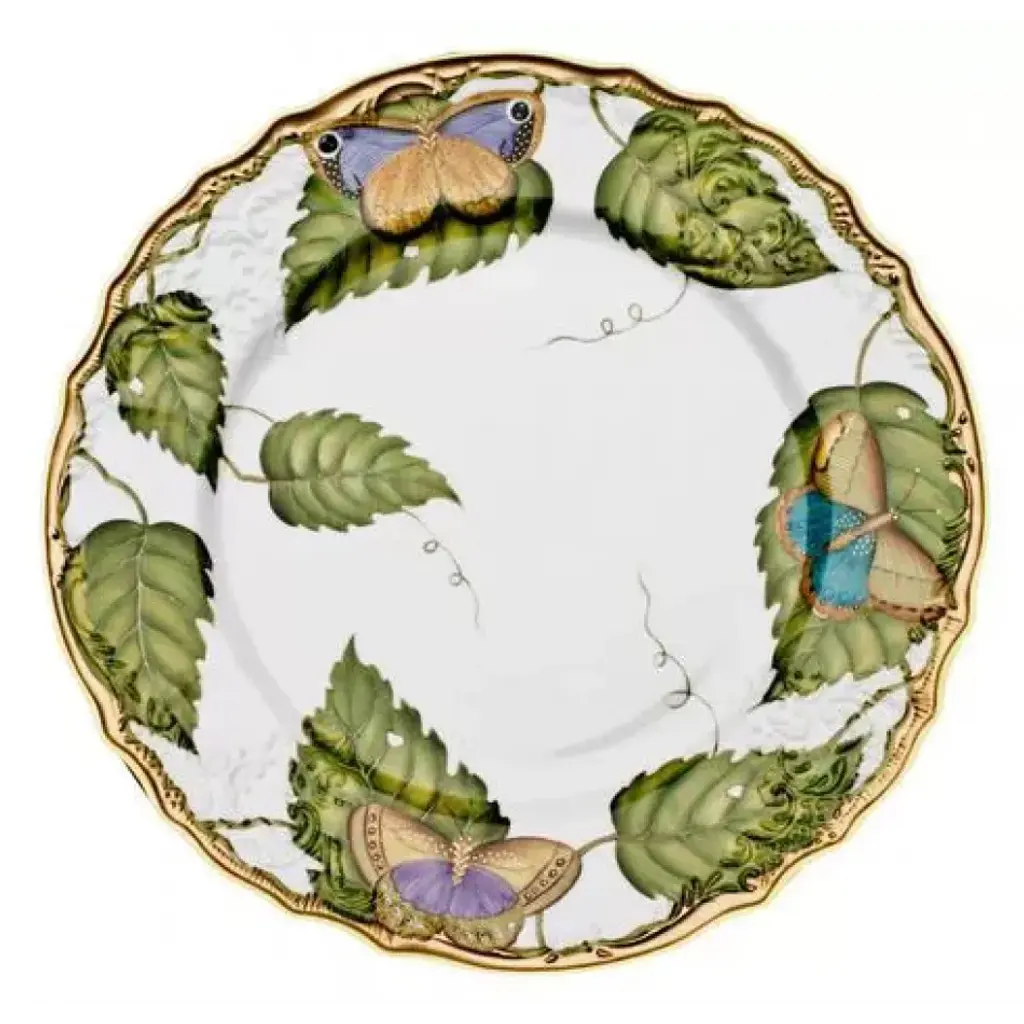 Flighty butterflies dance across each plate and dish in this dinnerware set. Five piece place setting includes dinner plate, salad plate, bread & butter plate, tea cup and saucer. Anna Weatherley’s designs are based on botanical sketches from the 18th century as well as Dutch still-life paintings. At home, we find her pieces look just as good on our tables as they do on our walls. Fashion designer, socialite, and artist Anna Weatherley's signature style of butterflies, flowers, and botanical drawings is brought by artists in her factory in Budapest, Hungary. There, they hand-paint and decorate each piece to create a unique work of art that brings beauty to your home all year.