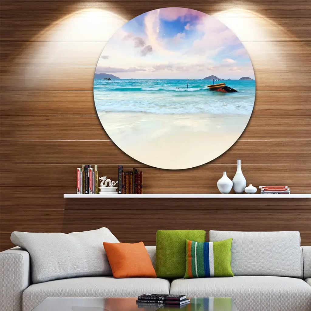 Exotic Seashore Sunset Over Blue Sea, Seascape Round Metal Artwork, 23"