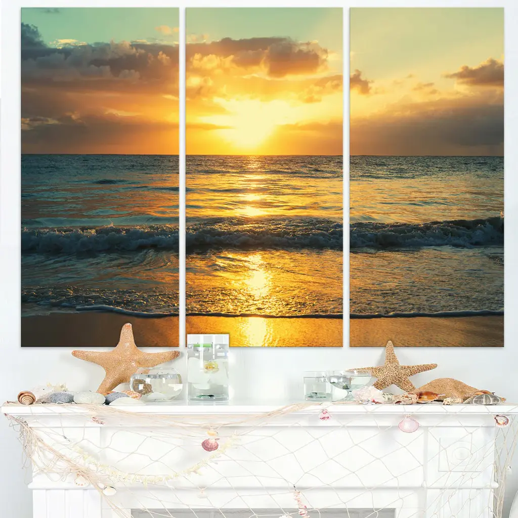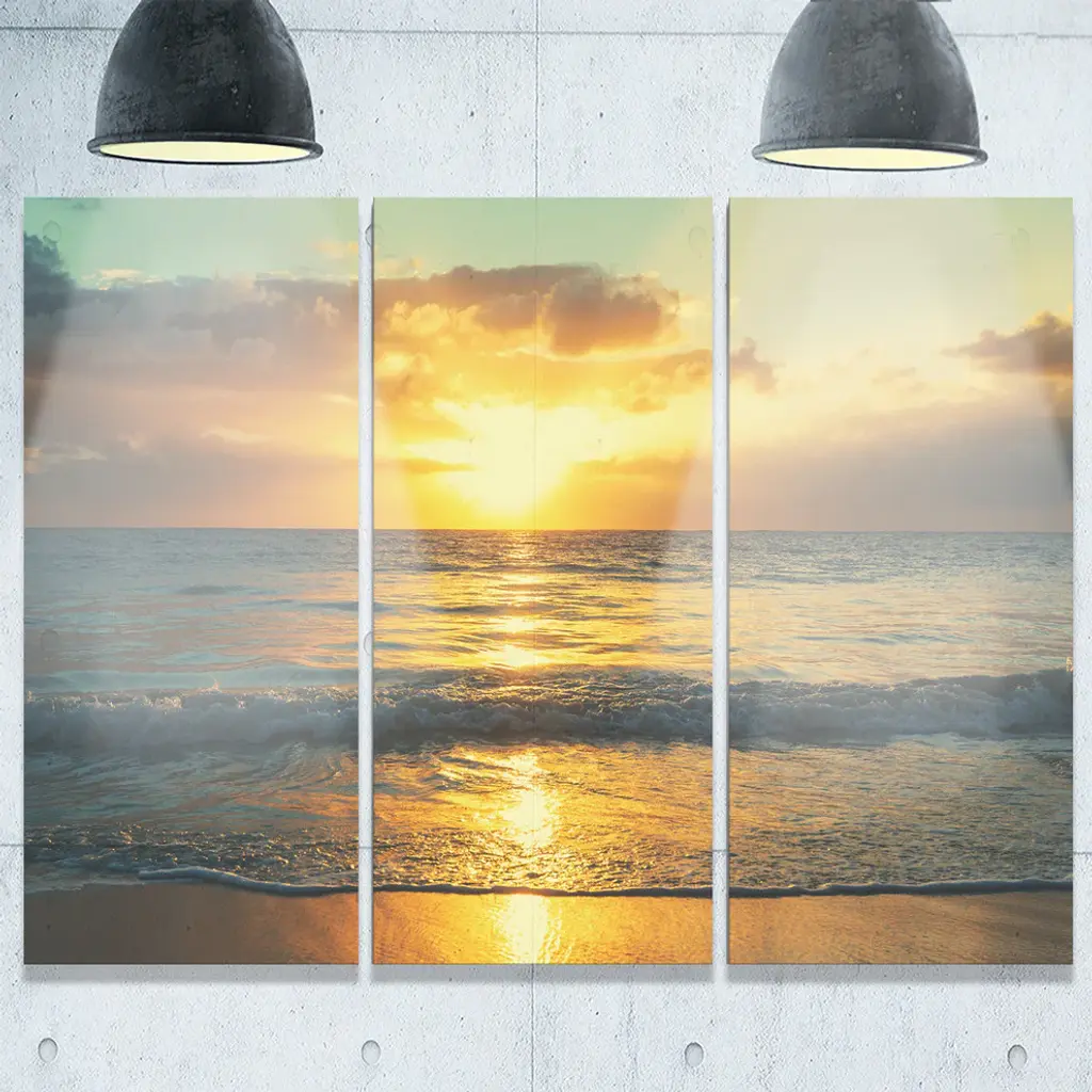 "Exotic Water And Sky Sunset Panorama" Metal Wall Art, 3 Panels, 36"x28"