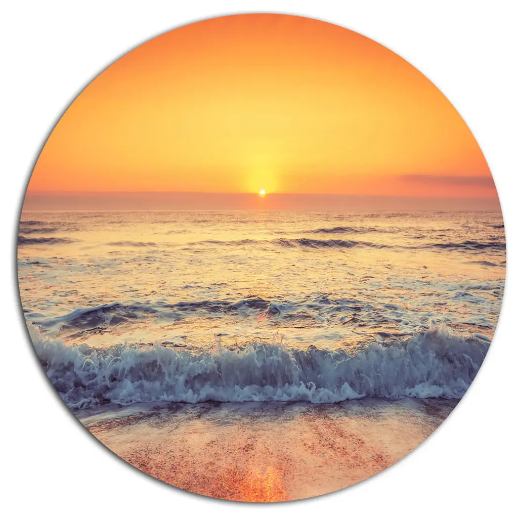 Exotic Water And Sky Sunset Panorama, Seashore Round Metal Artwork, 11"