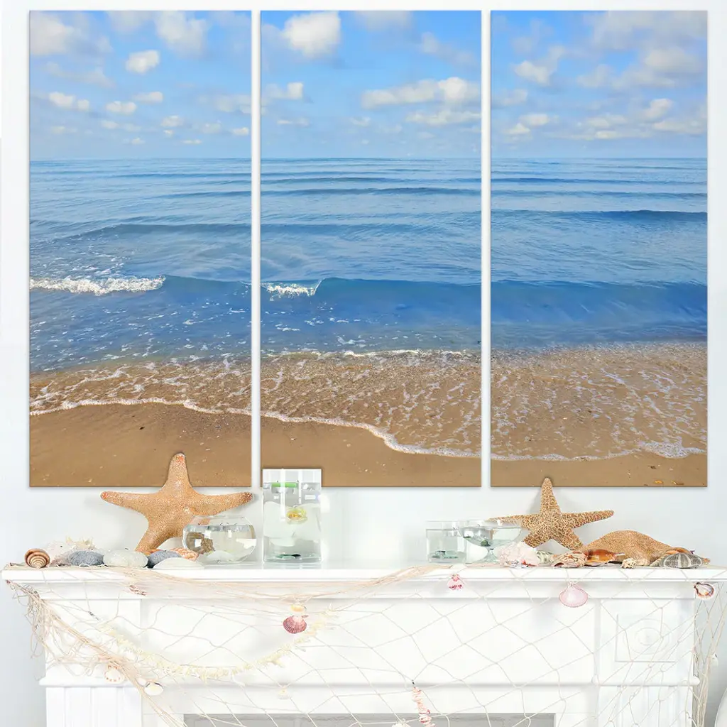 "Expansive Tropical Blue Beach" Metal Wall Art, 3 Panels, 36"x28"