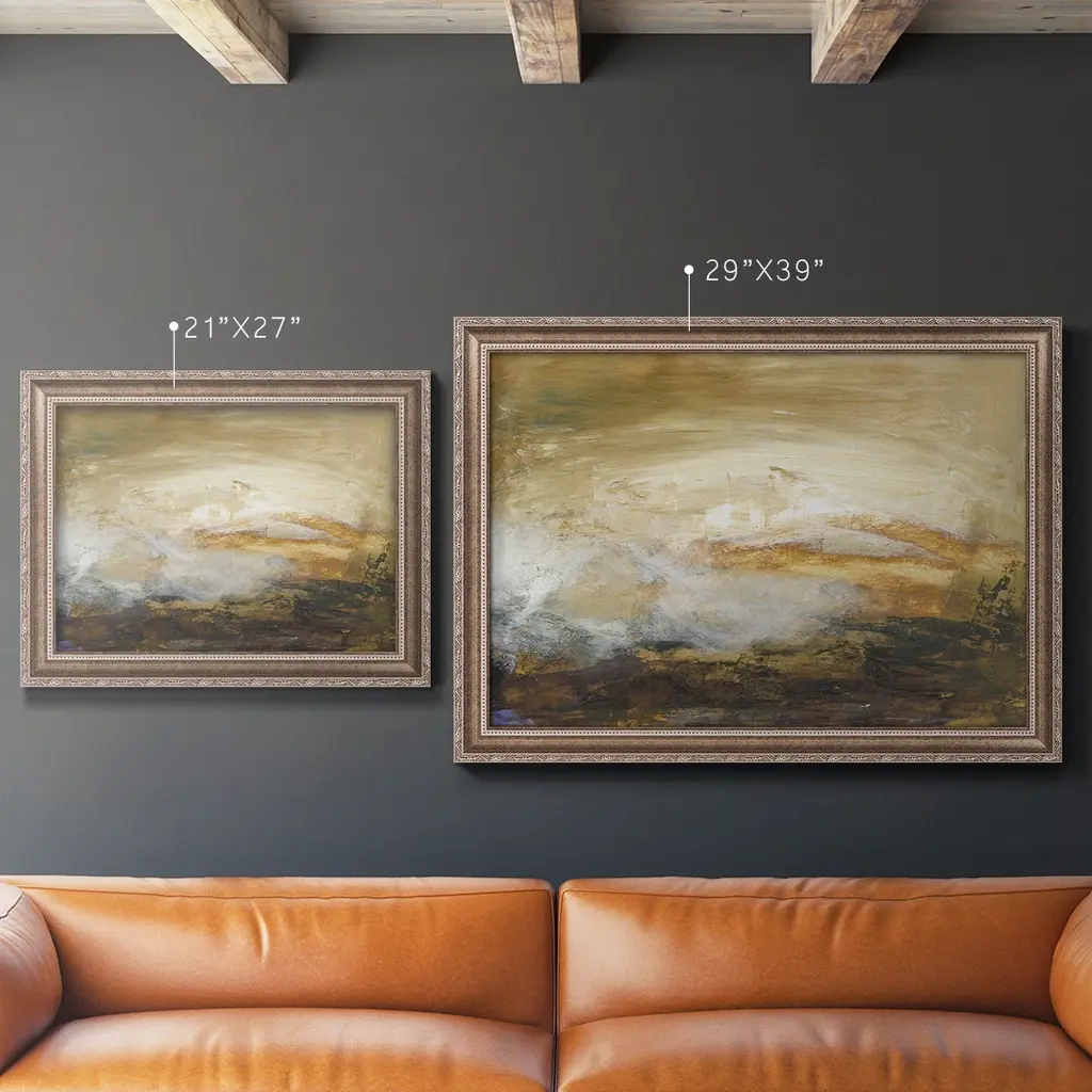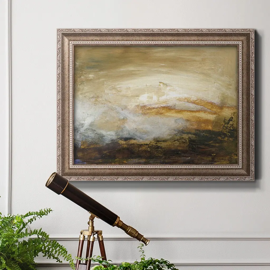 Exploring II Premium Framed Canvas- Ready to Hang A Premium Framed Canvas created to last. Framed in distressed wood and available in an array of sizes and colors Featuring a beveled a solid wood stretcher bar, each piece comes ready to hand 3 SIZES AVAILABLE 16''X20'' - Overall Size 18'X27'' - Overall Size 24''x36'' - Overall Size Each piece is made to order. Each piece comes with hanging hardware. Made in the USA Ready to Hang Giclee Paper Print Acrylic Glass Beveled Matt Board