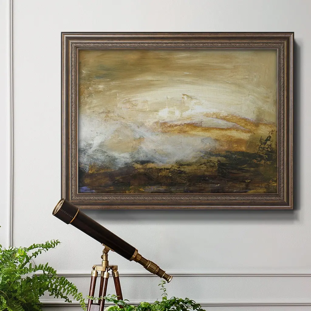 Exploring II Premium Framed Canvas- Ready to Hang A Premium Framed Canvas created to last. Framed in distressed wood and available in an array of sizes and colors Featuring a beveled a solid wood stretcher bar, each piece comes ready to hand 3 SIZES AVAILABLE 16''X20'' - Overall Size 18'X27'' - Overall Size 24''x36'' - Overall Size Each piece is made to order. Each piece comes with hanging hardware. Made in the USA Ready to Hang Giclee Paper Print Acrylic Glass Beveled Matt Board