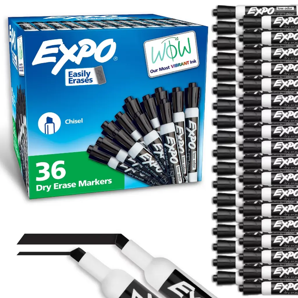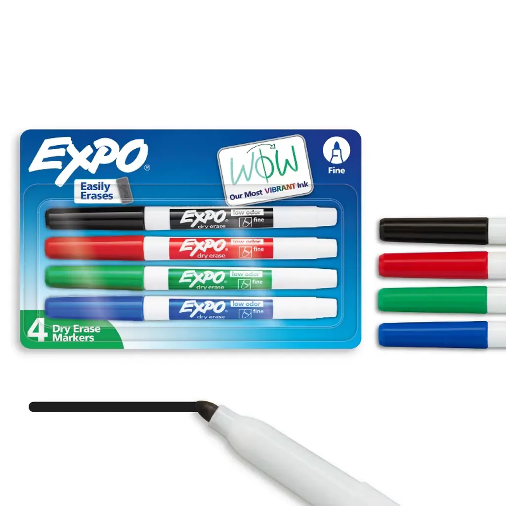 Capture ideas, share information, and organize life with vivid EXPO Dry Erase Markers! Now more vibrant than ever, this collection of EXPO markers helps everything come across clearly—from big ideas to fine details. The presentation markers are made for the whiteboard and beyond with ink that pops on glass, acrylic, and other clear, non-porous surfaces. They’re perfect for planning, presentations, lessons, calendars, home organization, and more! Plus, the wide range of colors of these whiteboard markers add versatility and personalization to any of your marking; you’ll be able to accent with a colorful doodle or sketch if you’re a teacher or parent! With an EXPO eraser or dry cloth, the ink erases cleanly and easily, so there’s little pause in any brainstorm session. And the low odor markers are great for classrooms, offices, and homes!