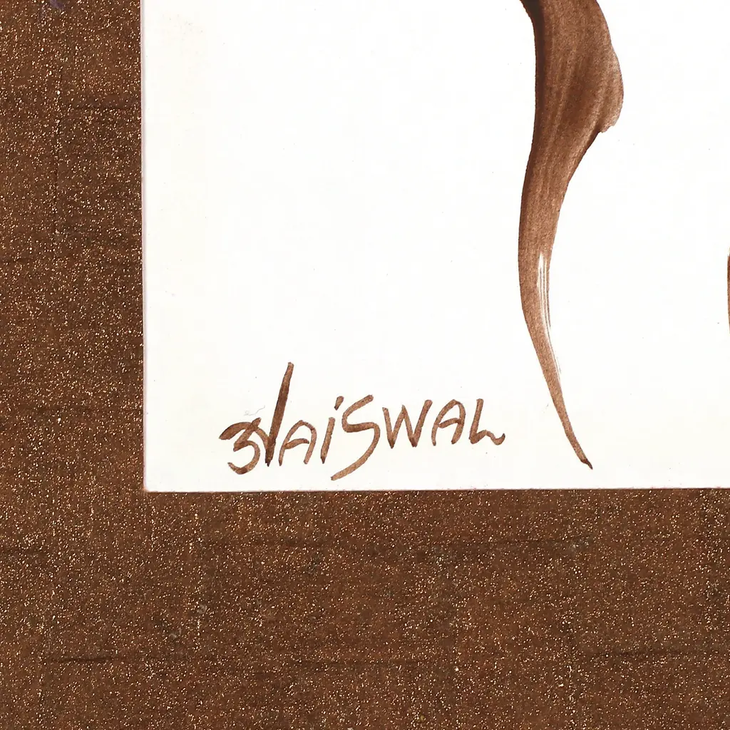 Discreet dance steps invite you to experience life through sweet tunes. India's Sunil Jaiswal portrays the beauty of music through a delicate dancer made of brown brushstrokes, combining acrylic and watercolor in one expressionist composition full of emotions.The painting arrives signed and stretched.