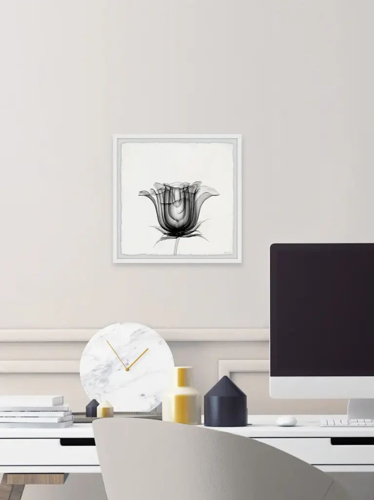 This photographic print features a black tulip that pops in front of a white background. Proudly printed in the USA, this piece is printed on high quality archive paper and professionally hand-framed. With wall-mounting hooks included, this artful accent is ready to hang up as soon as it reaches your front door.- Top quality Giclee print on high resolution Archive Paper- Hand cut deckled edges- High quality durable non-warping frame- Finished under shatter resistant plexiglass- Arrives ready to hang- Includes a certificate of authenticity- Printed in the USA