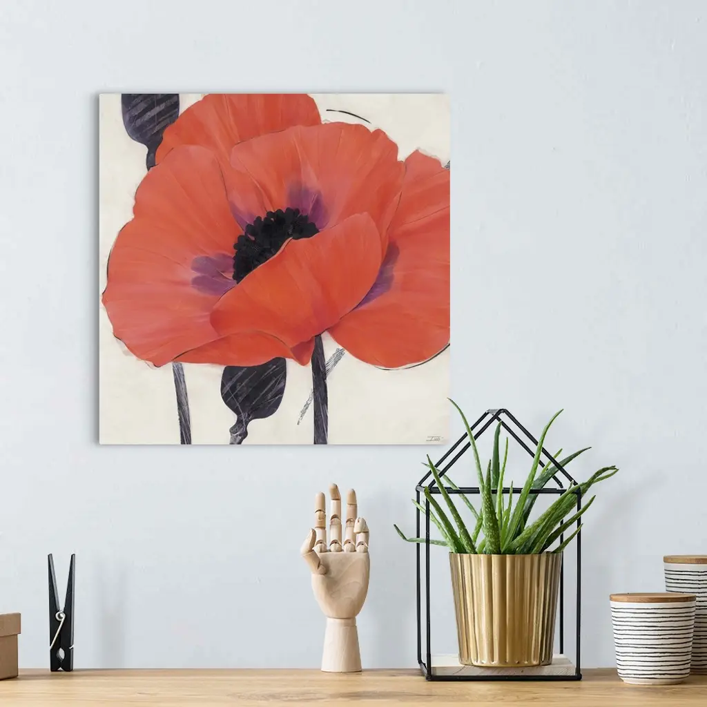Contemporary home decor painting of a close-up of an orange poppy.