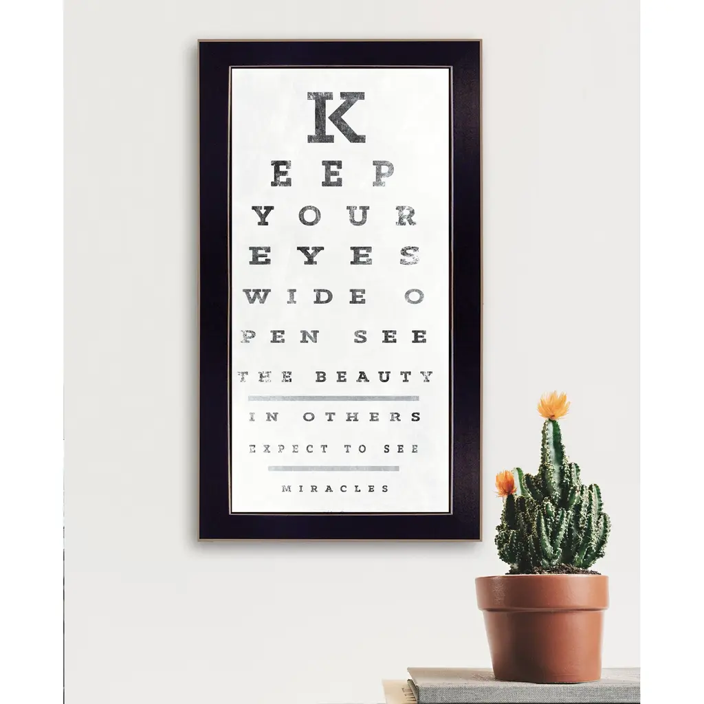 Add an air of fashion to your room and rejuvenate the space with this eye chart ii 4 black framed print wall art. This print is a visual artistic expression that allows you to decorate your space in style. Reproduced for you on paper, this hanging decorative accent will be a trendy and fashionable way to dress your walls. Hang on your wall to add some up to date fashion and decoration. Instantly liven up your space with this art that brings color and dimension to your walls. 26" H x 14" W x 1" D