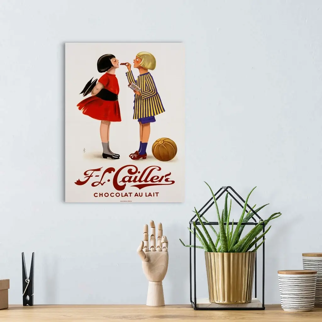 F-L Cailler's Chocolat Au Lait Chocolate Advertisement Poster wall art for home and office decor. Discover canvas art prints, photos, mural, big canvas art and framed wall art in GreatBigCanvas.com's varied collections.