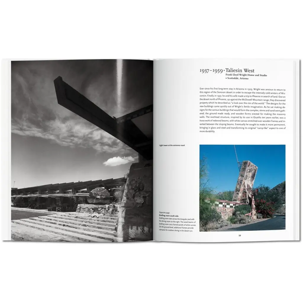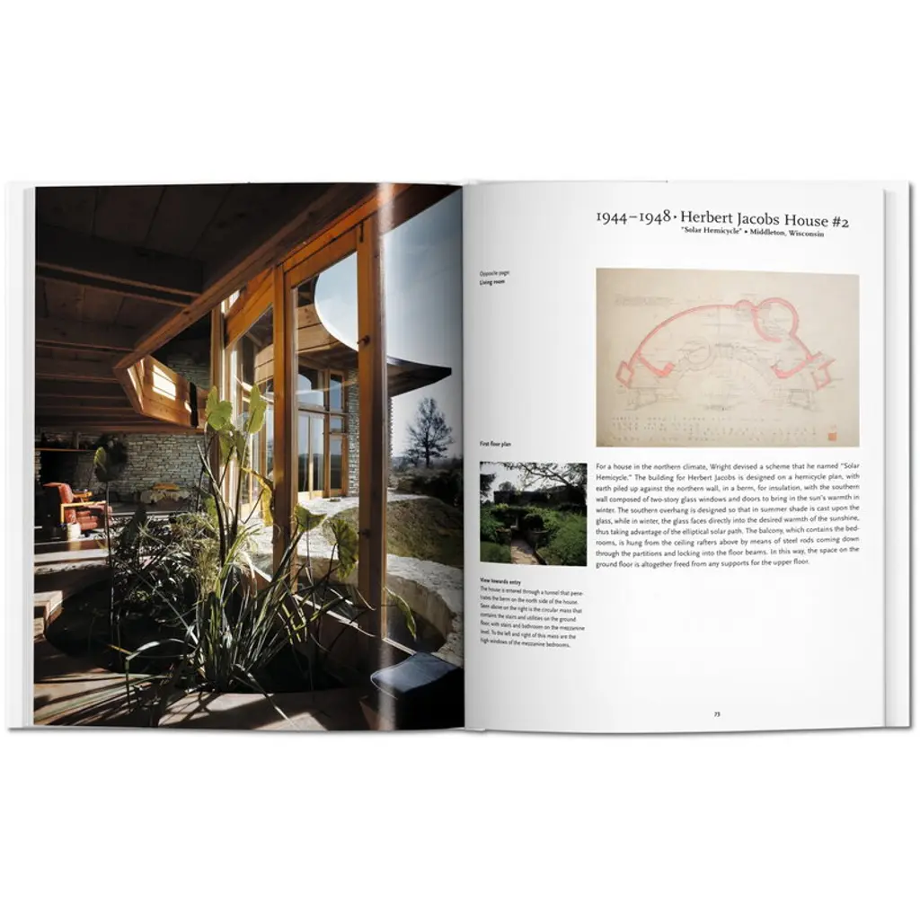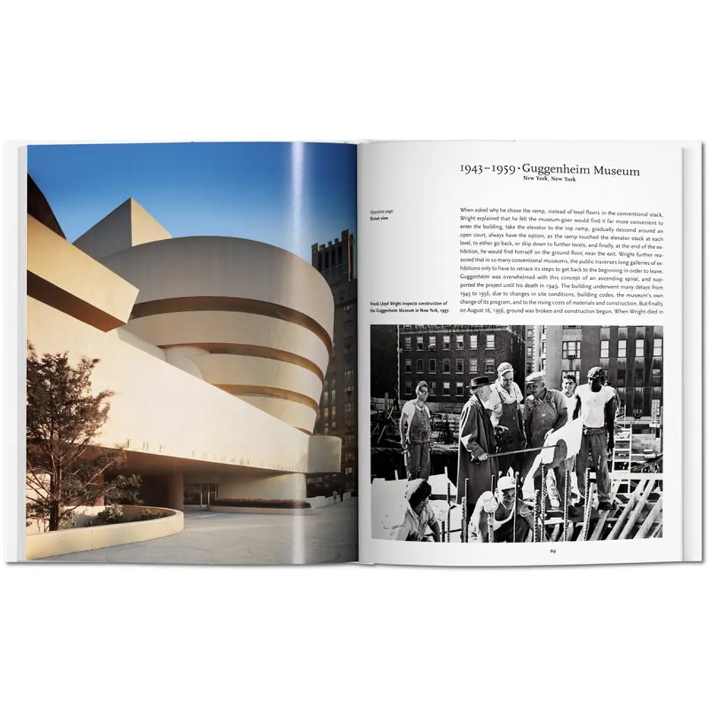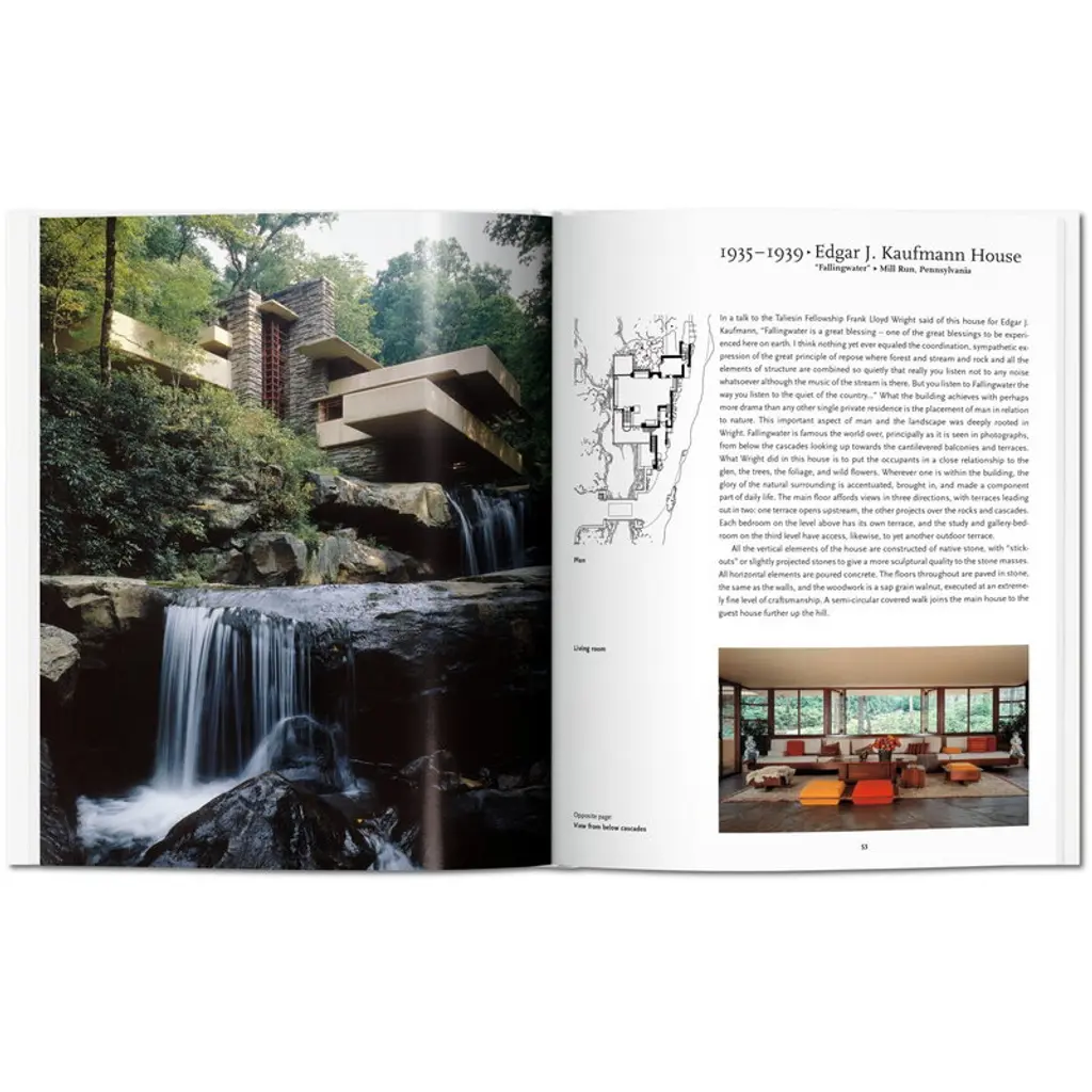 Published by Taschen, F. L. Wright provides a compact insight into the career of the great American architect Frank Lloyd Wright (1867–1959). His masterful work ranges from bold skyscrapers to humane, organic architecture, such as the Fallingwater house in Pennsylvania. Written by Wright’s apprentice Bruce Brooks Pfeiffer, the book is part of Taschen's Basic Architecture series that presents life and work of internationally renowned architects with approximately 120 photographs, sketches and drafts. The series has been edited by German art historian Peter Gössel. From prairie houses to skyscrapers and the Guggenheim Museum, explore the life and work of one of the greatest pioneers in the history of architecture, Frank Lloyd Wright. Sketches, plans, and photographs chronicle all of Wright’s major works, celebrating his organic architecture philosophy, innovative use of industrial materials, and vision for a new way of American living.