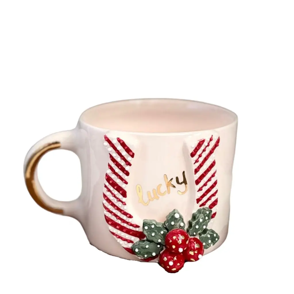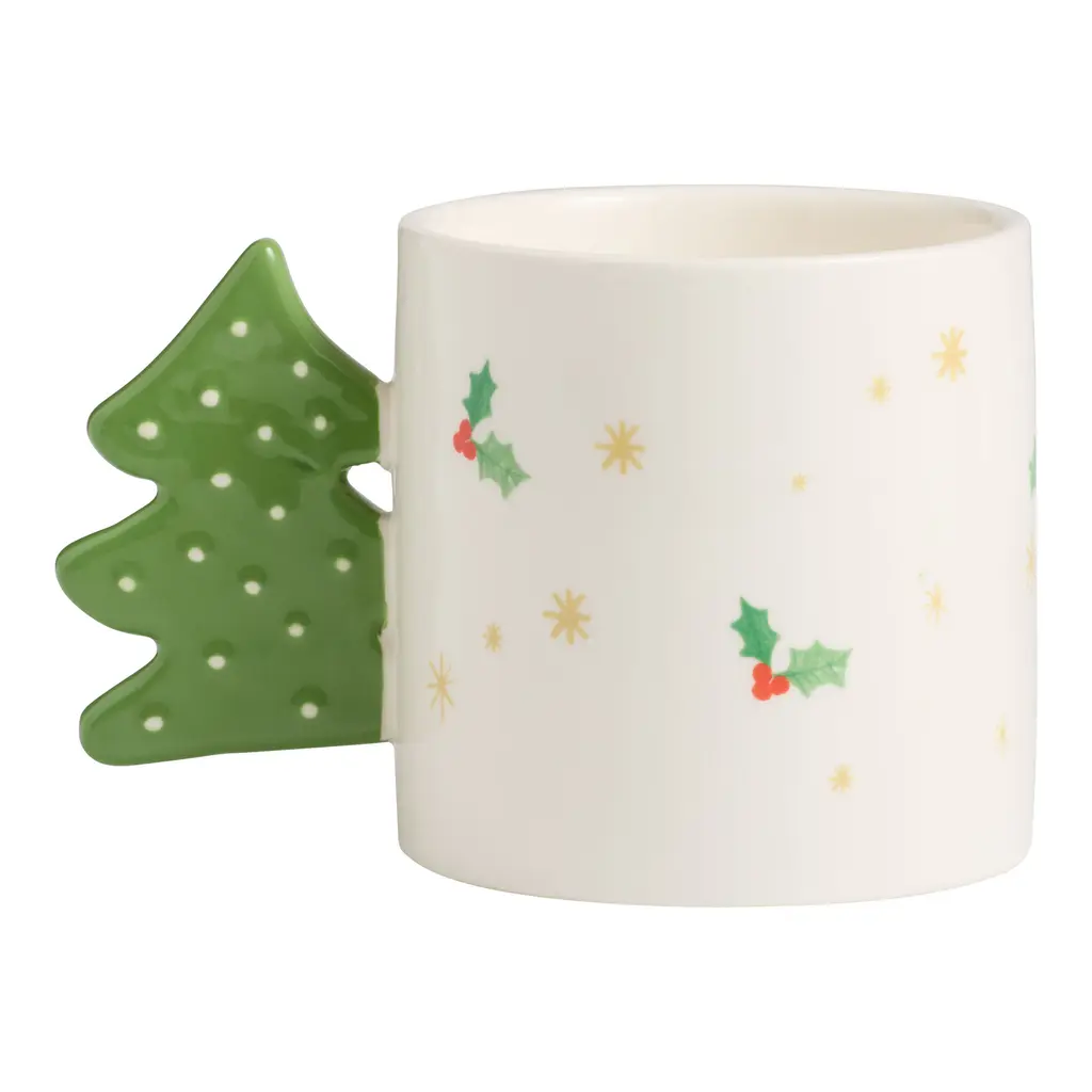 Our exclusive, colorful "Fa La Freakin' La" artwork gives this Christmas coffee cup a dash of sass. This merry mug is made of stoneware with a figural tree handle and hand painted and embossed details. 'Tis the season to explore our World Market seasonal shop and discover holiday home decor, gifts, and more festive finds.