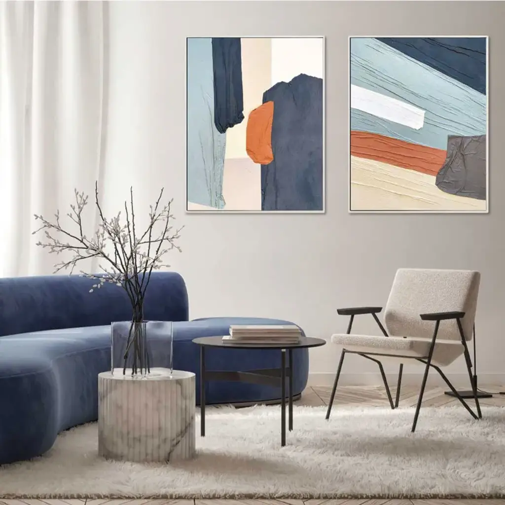Fabrics 1 is an abstract painting handmade on canvas. Three-dimensional applications of fabric are arranged and overlapped to create a modern artwork with a summery feel. With a wooden inner frame and a white wooden frame, the painting is ready to hang.The AGAVE Quadri collection represents the excellence of contemporary art applied to the world of interior design. Each piece, hand-painted with artisanal techniques by the finest artists in collaboration with the Italian company AGAVE, combines abstract, natural, and figurative elements to create unique and refined works. These paintings transform spaces into environments of great elegance and character, perfect for interior design projects that require a distinctive and artistic touch.