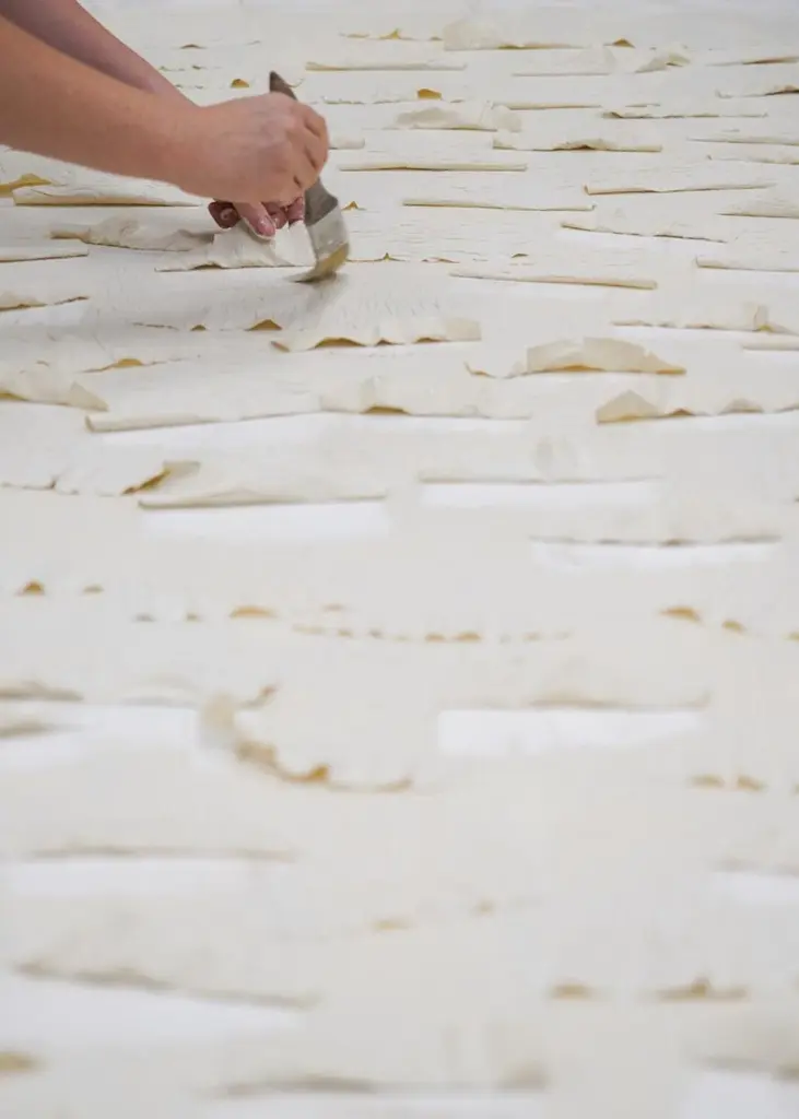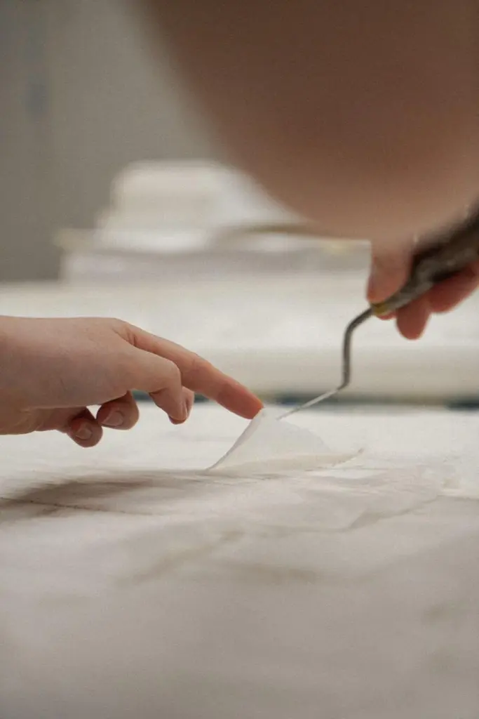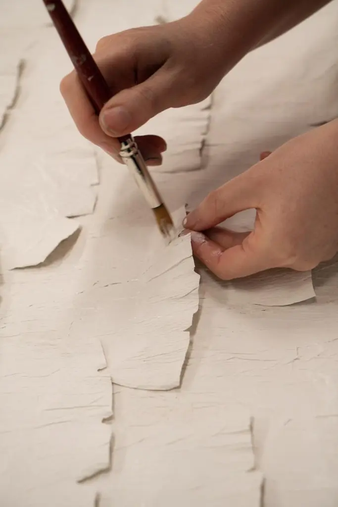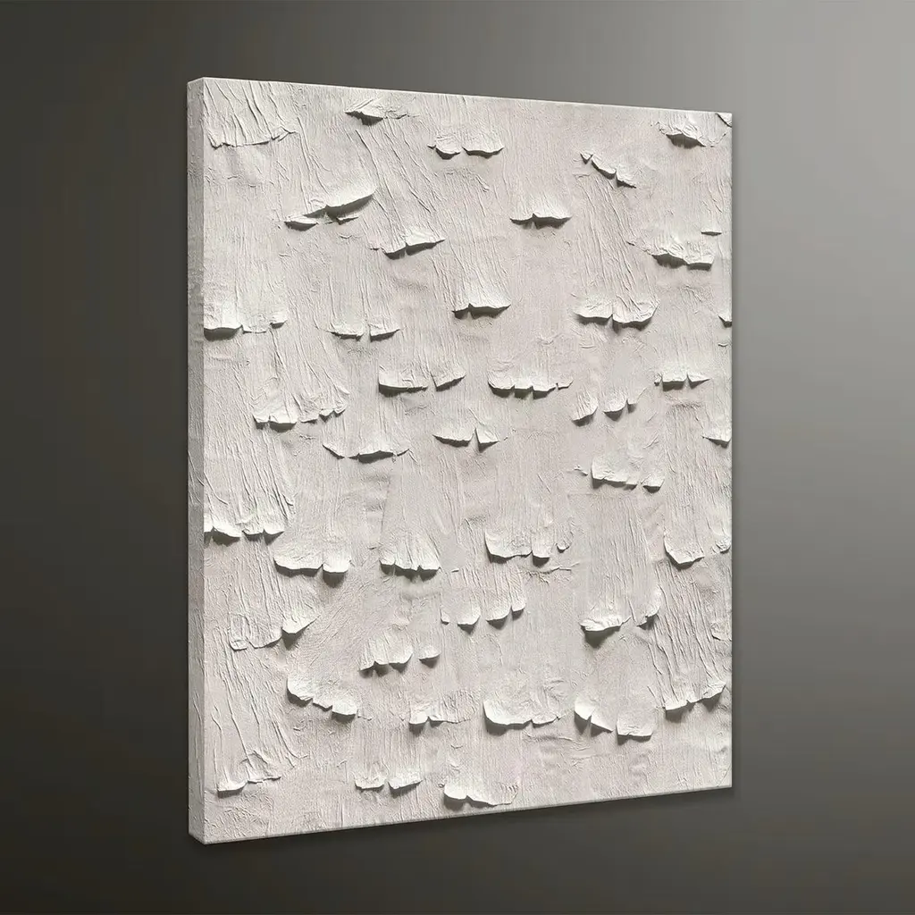 The Frameworks are created with the same technique as our wallcoverings and represent a unique artistic vision, which embellish the location where they are exhibited.The leaves of Ginko created in paper, are applied one by one on the canvas to create this painting. Inspired by the leaves of Ginko Biloba one of the oldest trees in the world, known for its strength and resistance to adversity. These characteristics have been the creative engine for this work, in which the sense of lightness of the white color is combined with the sculptural aspect, the three-dimensional effect of the raised leaves, gives the impression that they are being caressed by the wind.