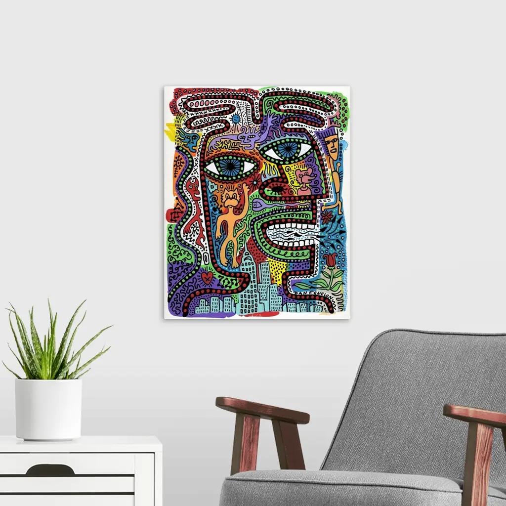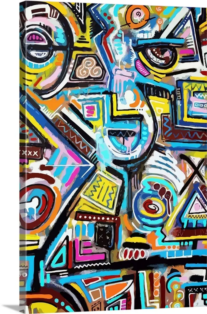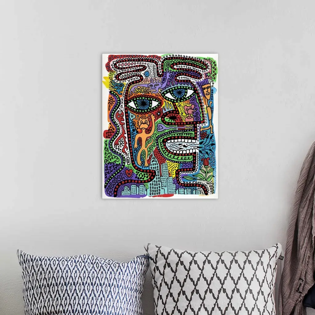 Contemporary aboriginal inspired artwork with bright colors and intricate detail.