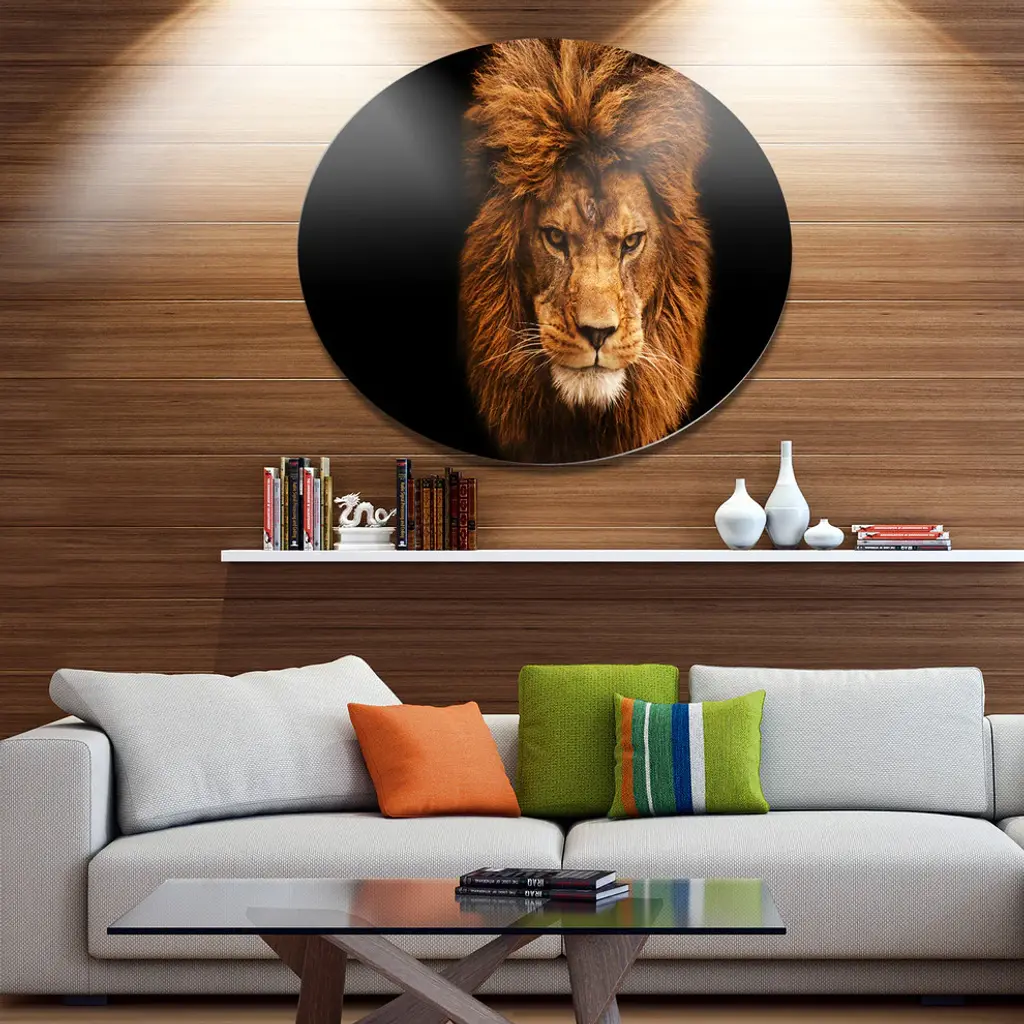 Face Of Male Lion On Black, Animal Round Wall Art, 11"