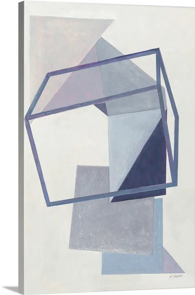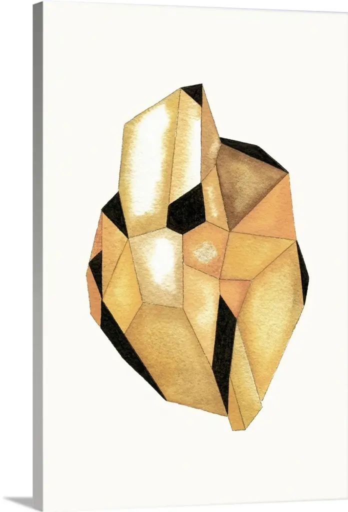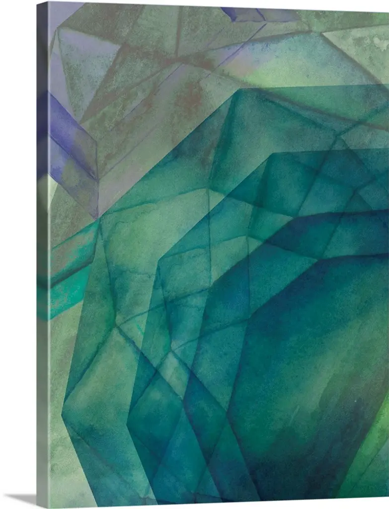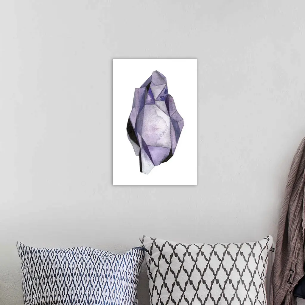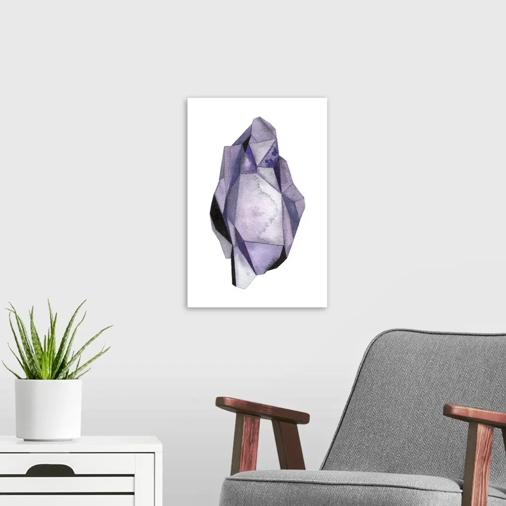 A contemporary abstract watercolor painting of an amethyst colored crystal-like shape.