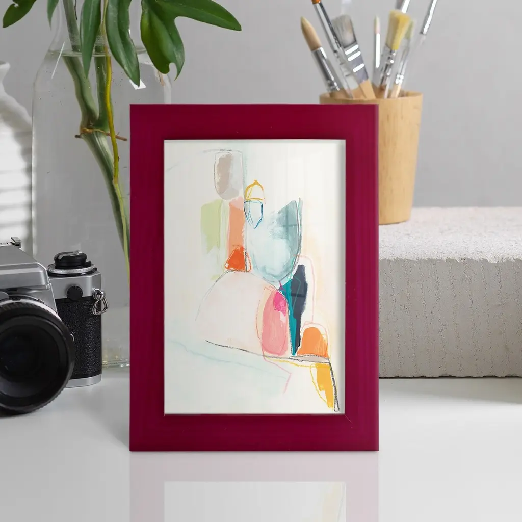 Factotum I -EZ SWITCH Framed Print w/glass-Cherry Red A delightful, framed print. Featuring a solid wood frame with real wood glass. This premium print is giclee quality. In addition, every frame features a removable back and table top stand. This allows you to change your art in the future or to just stand the art on a table for a new look. We are sure you'll enjoy our new series of EZ SWITCH Framed Art. Solid Wood Frame Real Glass Removable / Replaceable Art Built in Tabletop Stand Sizes range from 4x6 up to 12x15 - buy just one or pair them up as sets as you see fit.