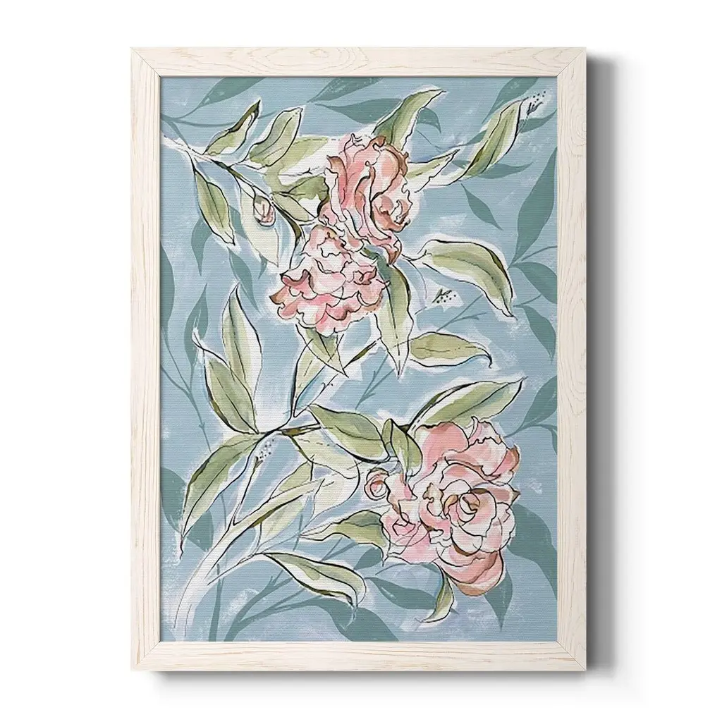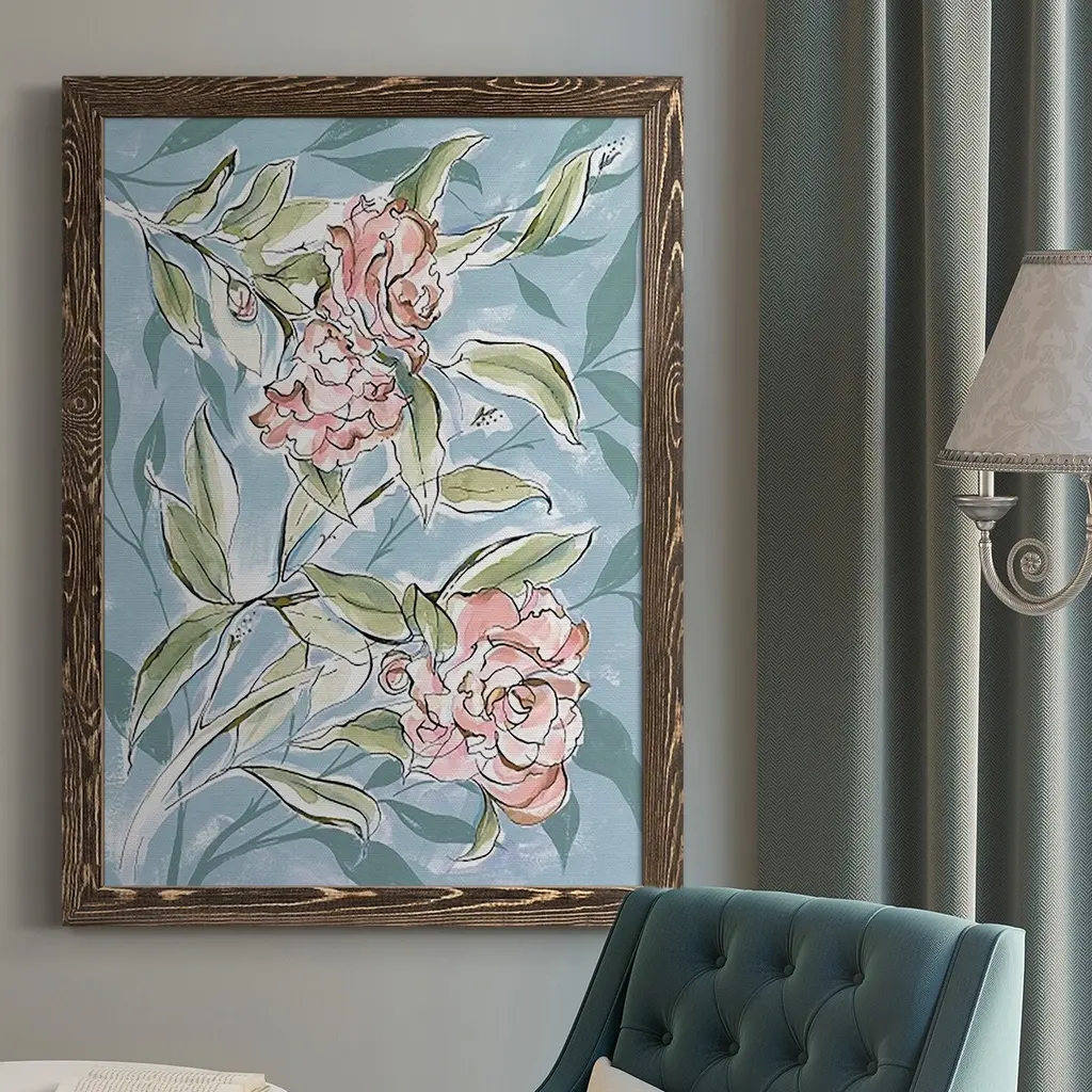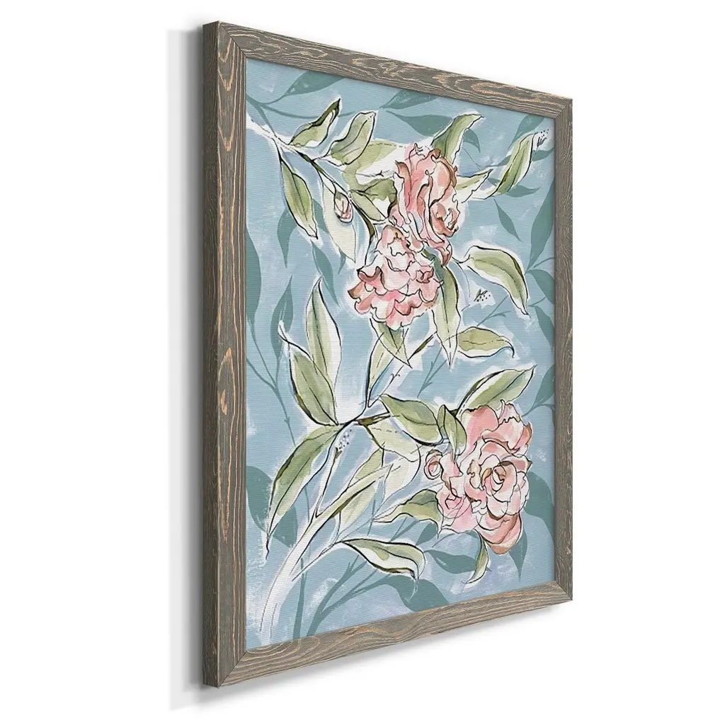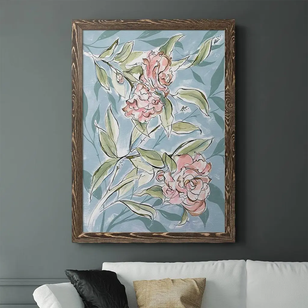Faded Camellias I-Premium Framed Canvas - Ready To Hang - 27.5x37.5 - Walnut