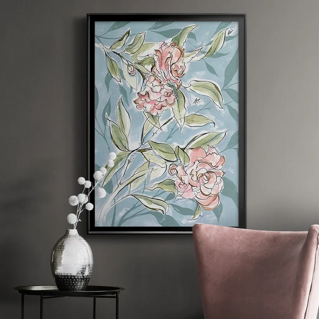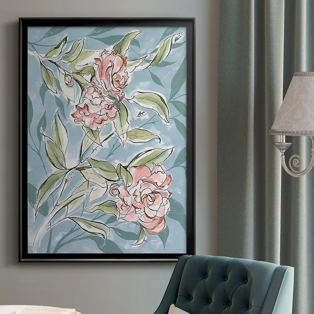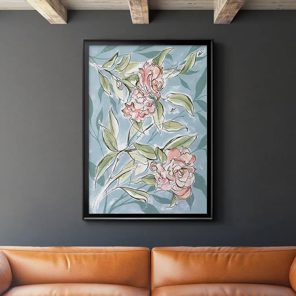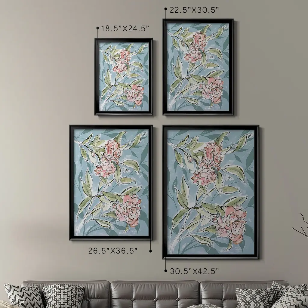 Faded Camellias I Premium Framed Print - Ready to Hang A Premium Framed Print created to last. Framed in distressed wood and available in an array of sizes and colors Featuring a beveled a solid wood stretcher bar, each piece comes ready to hand 4 SIZES AVAILABLE 30.5''X42.5'' - Overall Size 26.5'X36.5'' - Overall Size 22.5''x30.5'' - Overall Size 18.5''x24.5'' - Overall Size Each piece is made to order. Each piece comes with hanging hardware. Made in the USA Ready to Hang