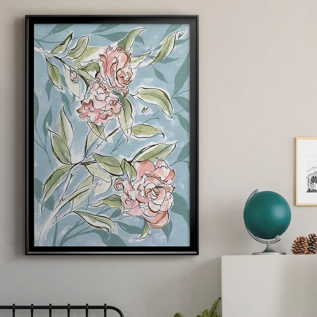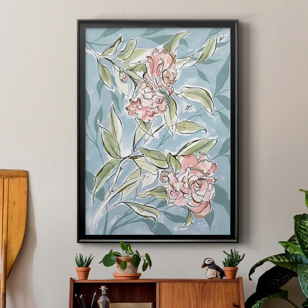 Faded Camellias I Premium Framed Print - Ready to Hang A Premium Framed Print created to last. Framed in distressed wood and available in an array of sizes and colors Featuring a beveled a solid wood stretcher bar, each piece comes ready to hand 4 SIZES AVAILABLE 30.5''X42.5'' - Overall Size 26.5'X36.5'' - Overall Size 22.5''x30.5'' - Overall Size 18.5''x24.5'' - Overall Size Each piece is made to order. Each piece comes with hanging hardware. Made in the USA Ready to Hang