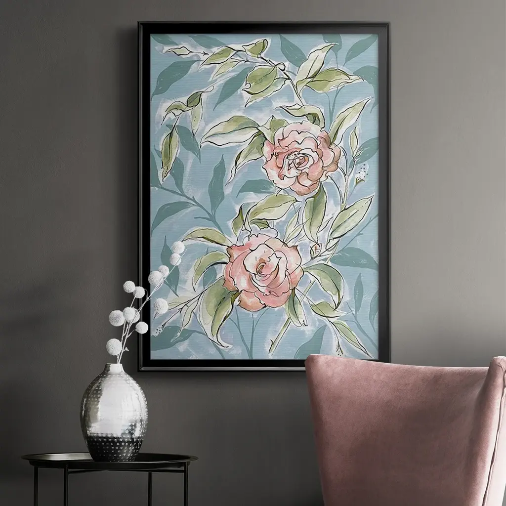 Faded Camellias II Premium Framed Print - Ready to Hang A Premium Framed Print created to last. Framed in distressed wood and available in an array of sizes and colors Featuring a beveled a solid wood stretcher bar, each piece comes ready to hand 4 SIZES AVAILABLE 30.5''X42.5'' - Overall Size 26.5'X36.5'' - Overall Size 22.5''x30.5'' - Overall Size 18.5''x24.5'' - Overall Size Each piece is made to order. Each piece comes with hanging hardware. Made in the USA Ready to Hang