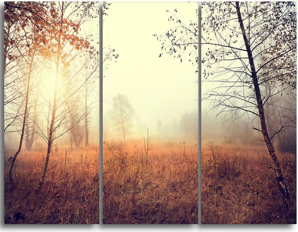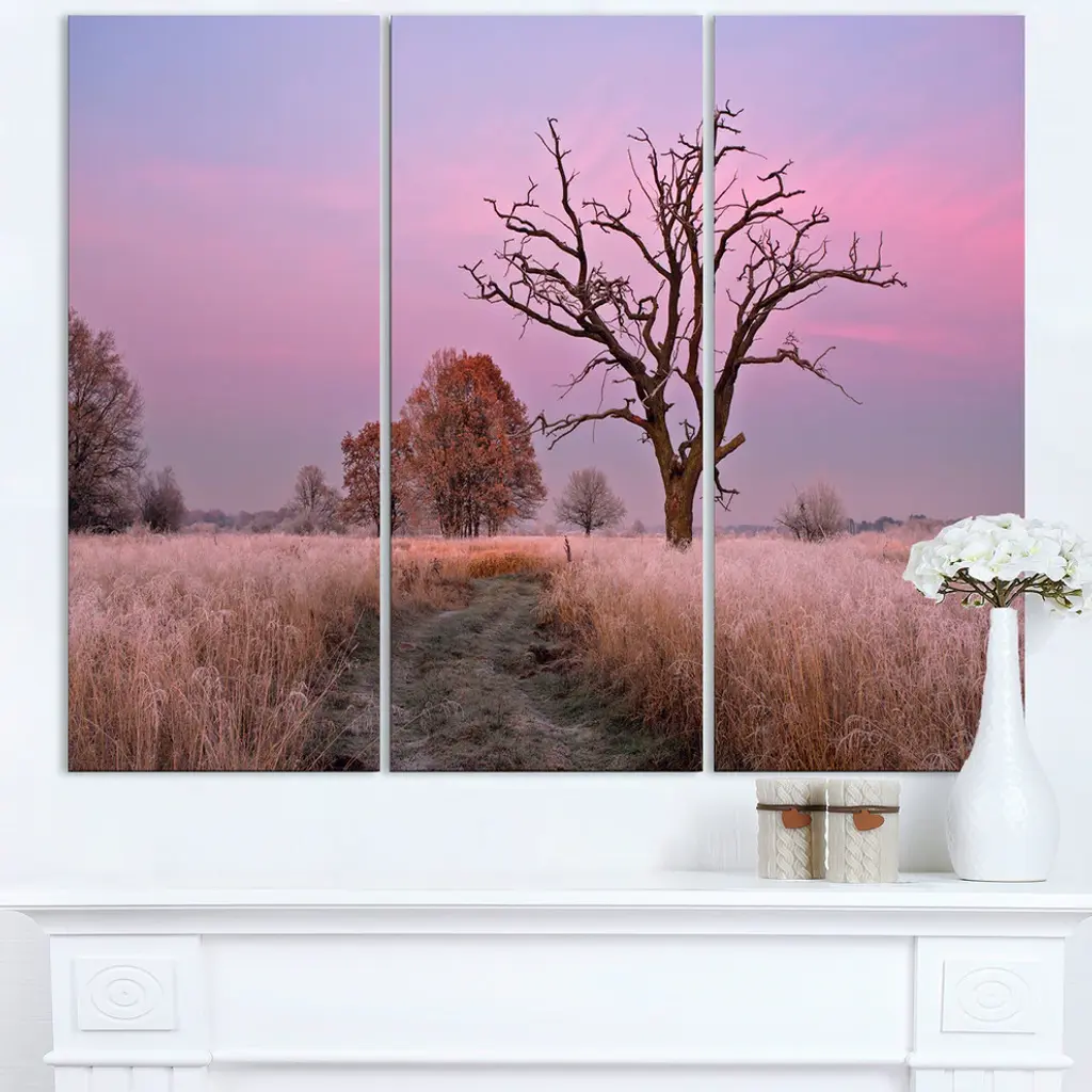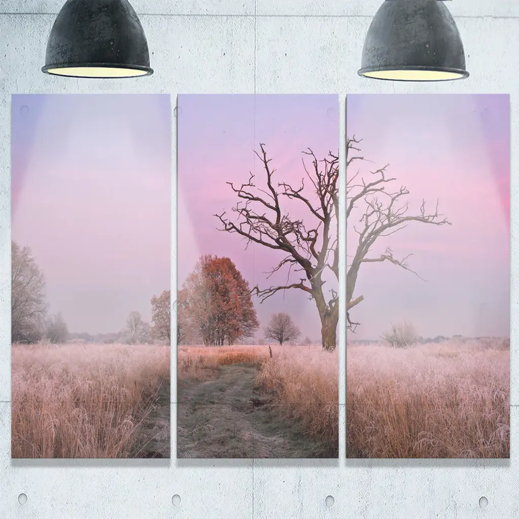 "Fairy Autumn Sunrise With Lonely Tree" Metal Wall Art, 3 Panels, 36"x28"