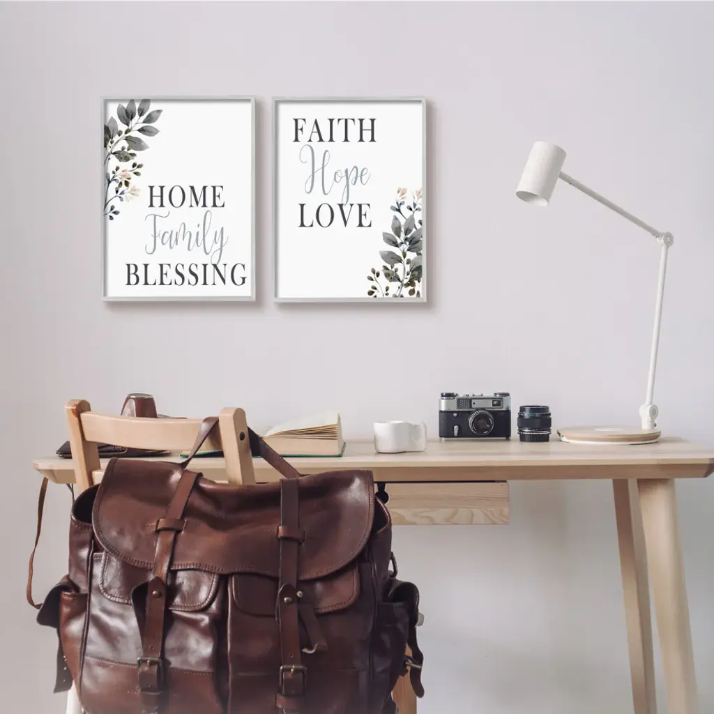 Faith Hope Home Family Phrases Soft Black Florals,11 X 14