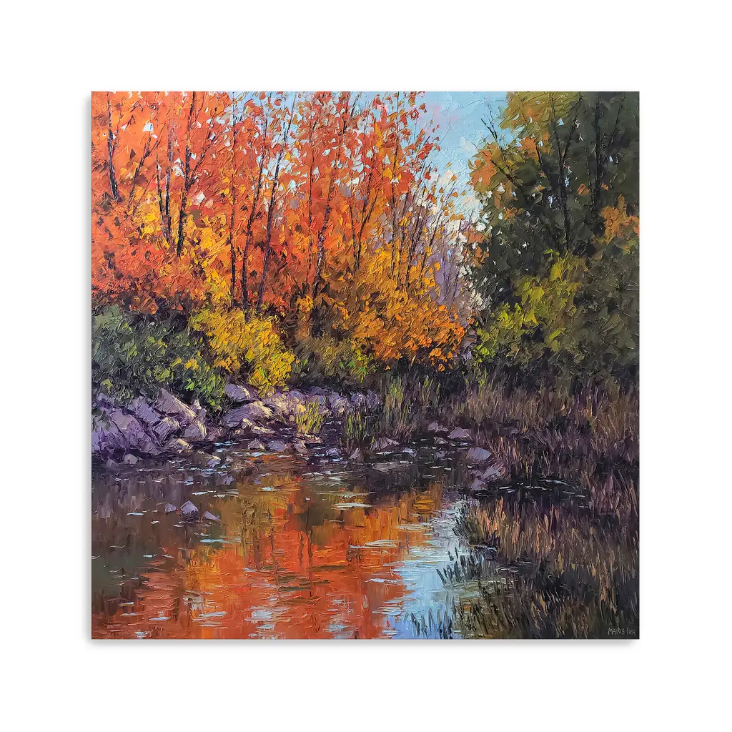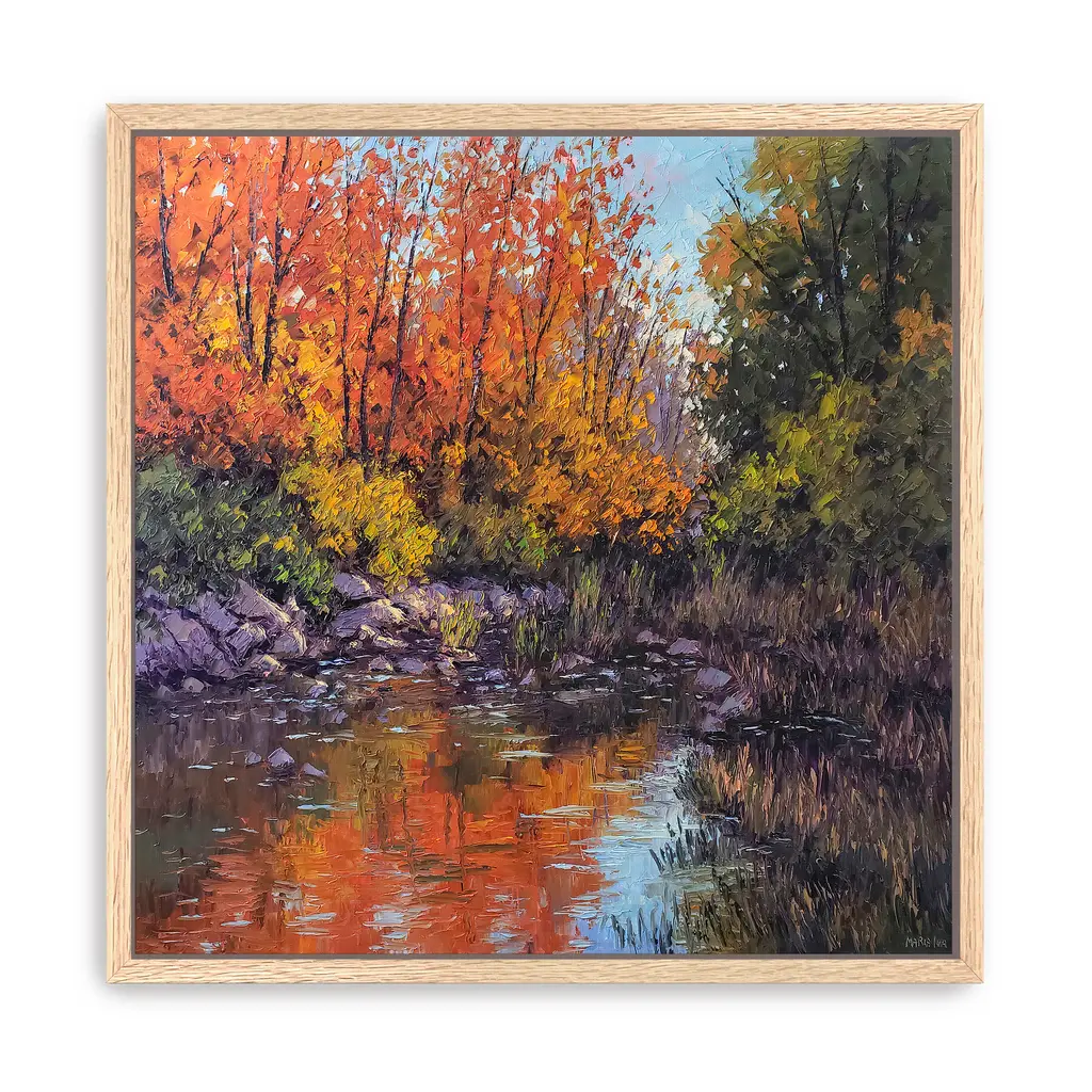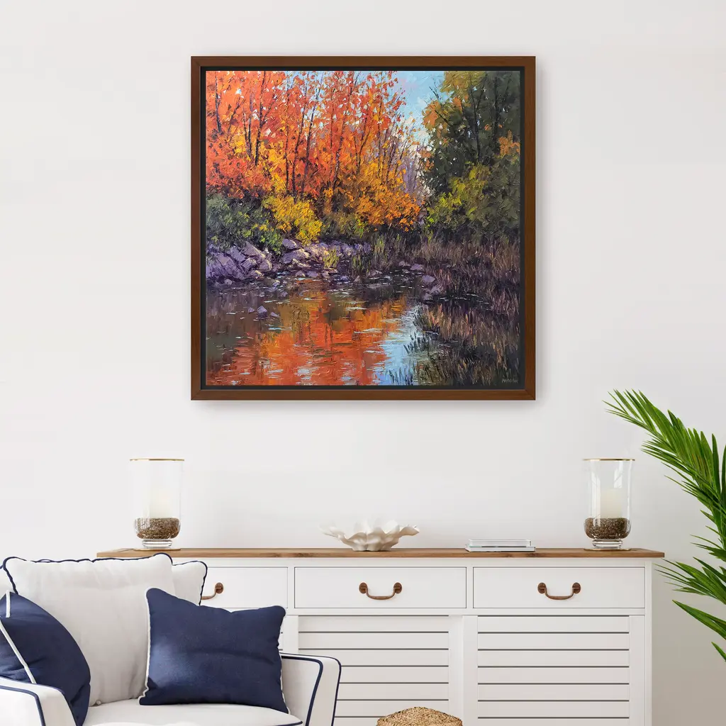 Fall At Etobicoke Creek Canvas Giclee Wall Art - Framed / Walnut / 30x30