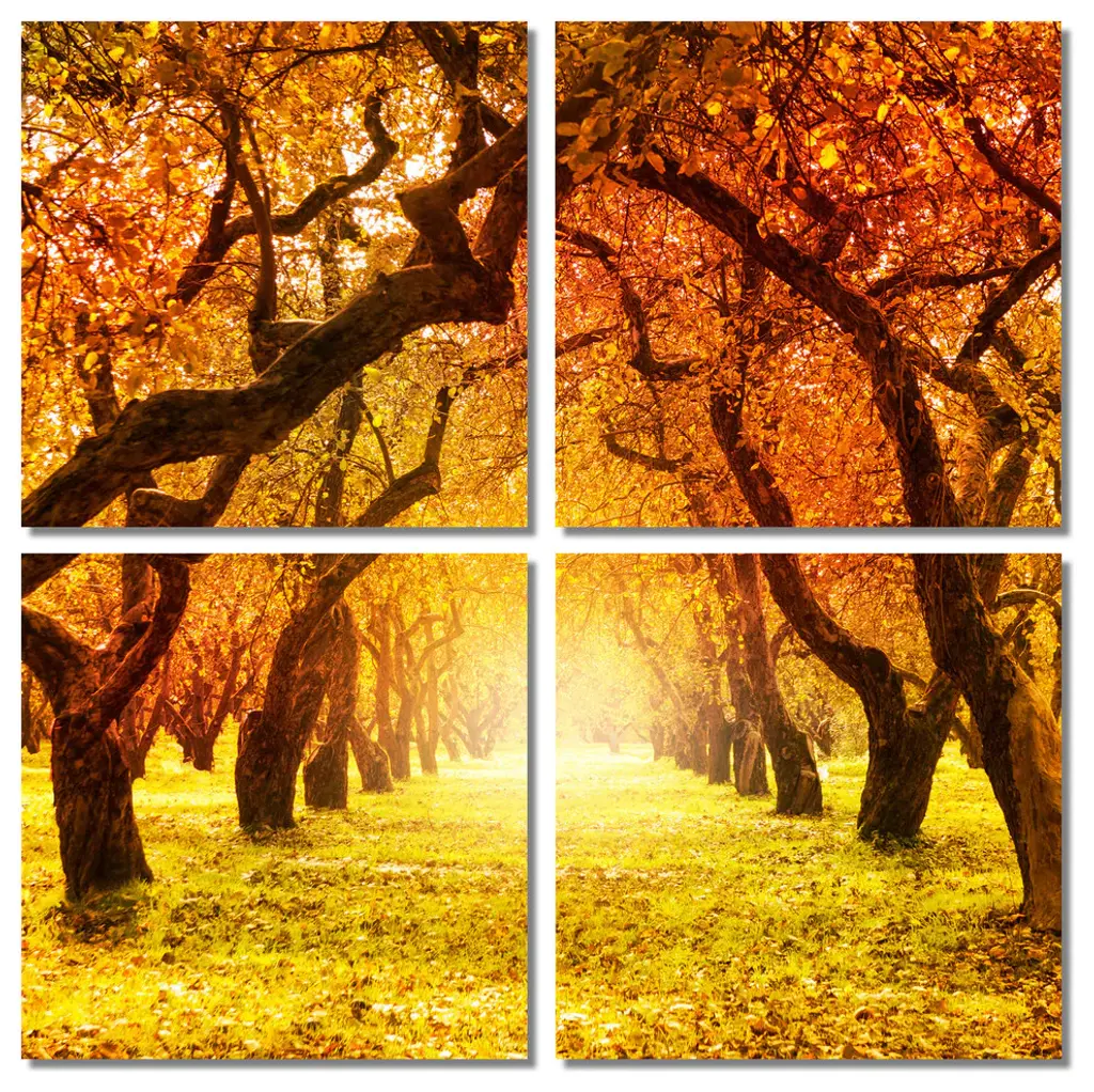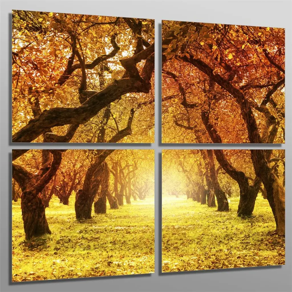 60"œ x 60"œ total size. Ready To Hang! (4 pieces - 30"œ x 30"œ each). 4 Panel Split (Quad) Fall Autumnal Park Metal Print in yellow, orange colors. Modern metal wall art for home or office wall decor & interior design. Printed on Luxurious, HD aluminum glossy metal panels. Multi panel art.. HD aluminum panels. Metal print wall art. Includes Shadow Wall Mount on the back.• Aluminum Metal Wall Art• Made in USA• Ready to hang - No assembly required• Shadow mount hardware on the back• 0.045"œ thick HD Aluminum Panels• Scratch resistant, glossy finish• Superb color clarity, luxurious prints• Epson printing process• For indoor or moisture rich environment use• Easy to clean. Gently wipe with microfiber cloth.