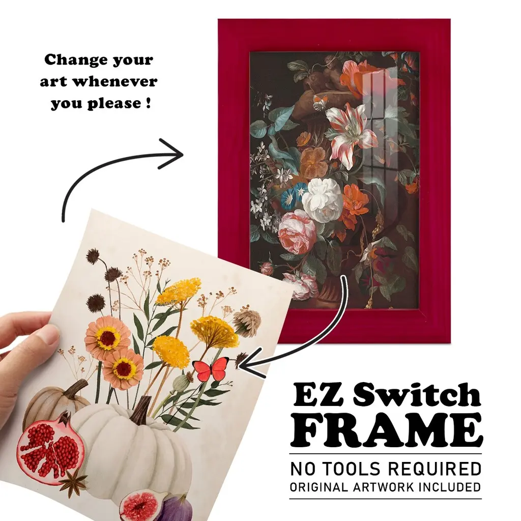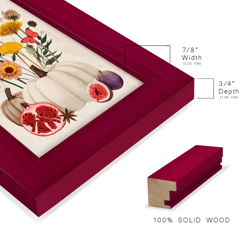 Fall Botanicals I -EZ SWITCH Framed Print w/glass-Cherry Red A delightful, framed print. Featuring a solid wood frame with real wood glass. This premium print is giclee quality. In addition, every frame features a removable back and table top stand. This allows you to change your art in the future or to just stand the art on a table for a new look. We are sure you'll enjoy our new series of EZ SWITCH Framed Art. Solid Wood Frame Real Glass Removable / Replaceable Art Built in Tabletop Stand Sizes range from 4x6 up to 12x15 - buy just one or pair them up as sets as you see fit.