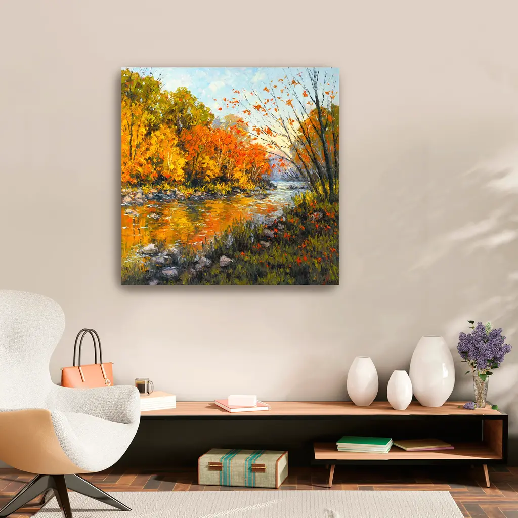 Bring the beauty of autumn indoors with this landscape fall canvas art print that captures the season’s serene charm. The rich hues and tranquil scenery evoke cozy walks through nature, making it a captivating focal point for seasonal décor. Perfect for lovers of fall landscapes and rustic wall art inspiration. Our Gallery Wrap Canvas Prints are proudly assembled with high quality materials in California, USA. Each piece is printed on a thick, archival grade canvas using Giclee technology. It is then hand-stretched by our experienced artisans over solid wood bars, which will not warp over time. The final product is a piece personally crafted for you to confidently display on your wall. Care and Assembly: Ensure that the location of your piece has little to no exposure to heat, sunlight, and moisture. Wipe clean, only if needed. Each piece includes a sawtooth hanger to hang on your wall horizontally.