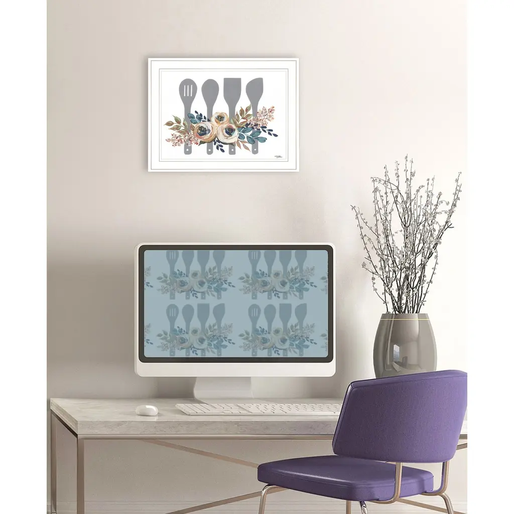 Bring some sizzle to your space with this eye-catching fall floral baking utensils 1 white framed print wall art. This print is a visual artistic expression that allows you to decorate your space in style. Reproduced for you on wood, this hanging decorative accent will be a trendy and fashionable way to dress your walls in a rustic and modern farmhouse vibe. Hang on your wall to add some up to date fashion and decoration. Instantly liven up your space with this art that brings color and dimension to your walls. 15" H x 19" W x 1" D