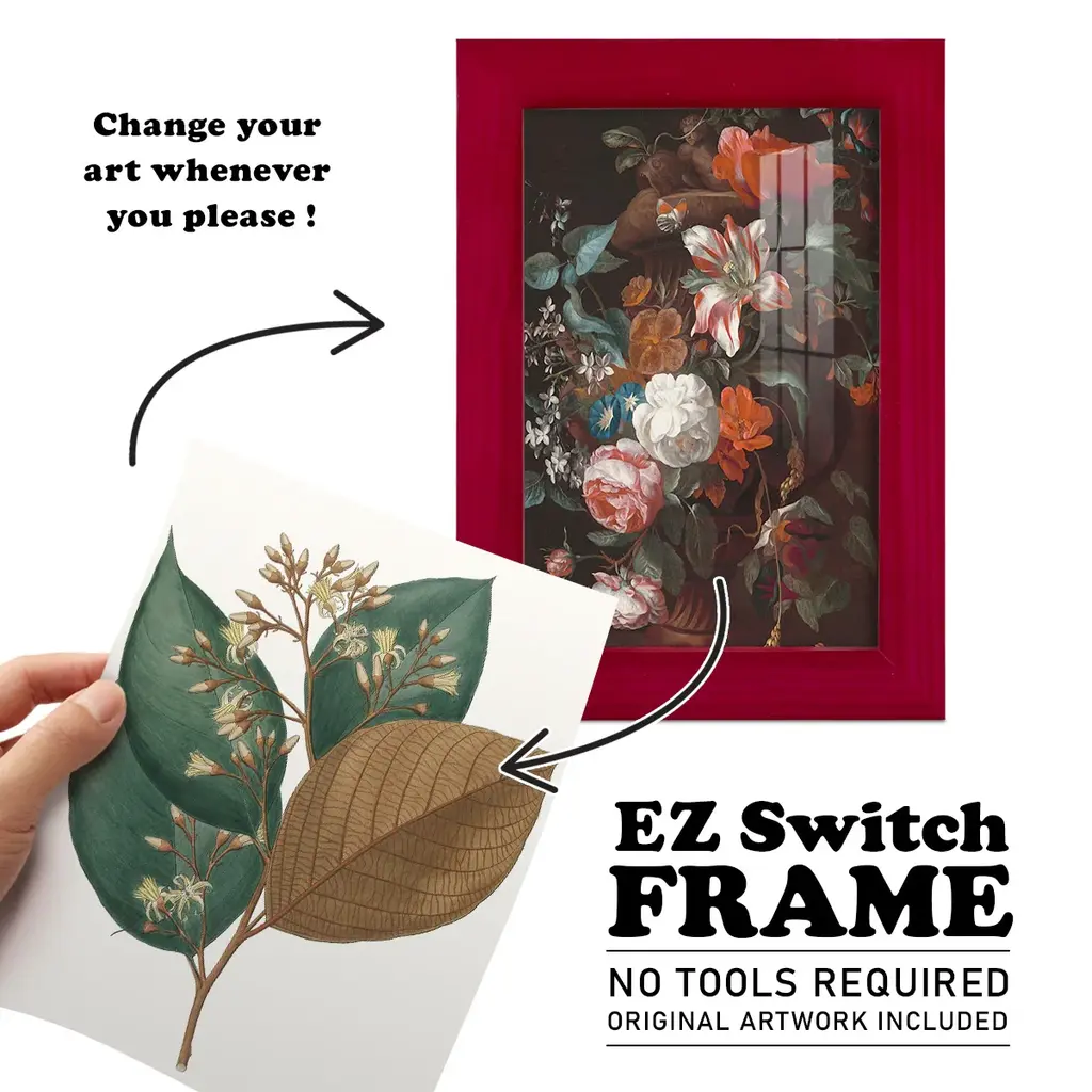 Fall Foliage V -EZ SWITCH Framed Print w/glass-Cherry Red A delightful, framed print. Featuring a solid wood frame with real wood glass. This premium print is giclee quality. In addition, every frame features a removable back and table top stand. This allows you to change your art in the future or to just stand the art on a table for a new look. We are sure you'll enjoy our new series of EZ SWITCH Framed Art. Solid Wood Frame Real Glass Removable / Replaceable Art Built in Tabletop Stand Sizes range from 4x6 up to 12x15 - buy just one or pair them up as sets as you see fit.