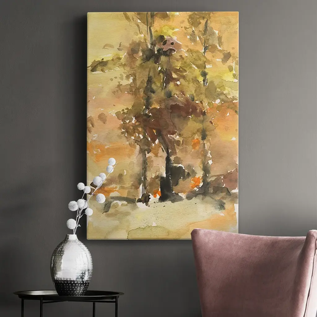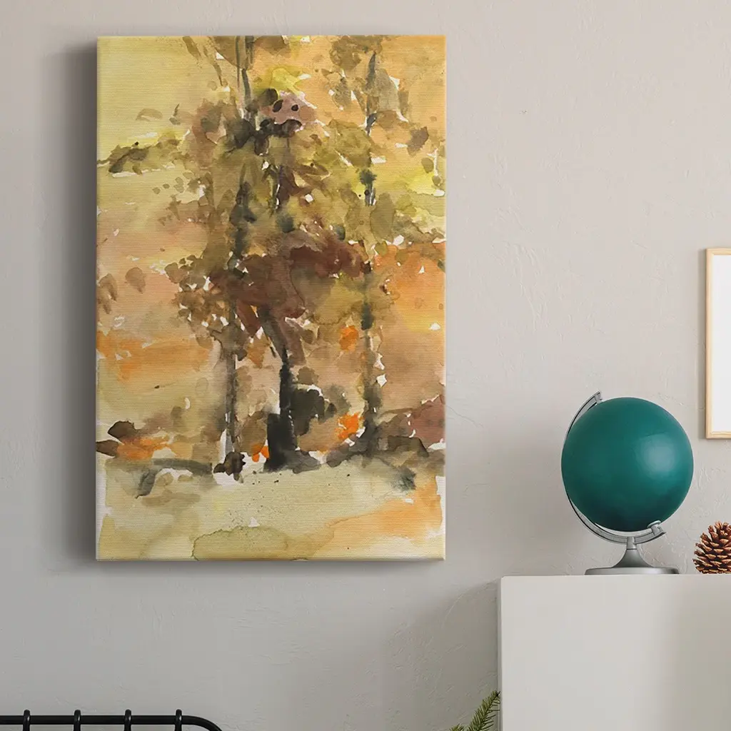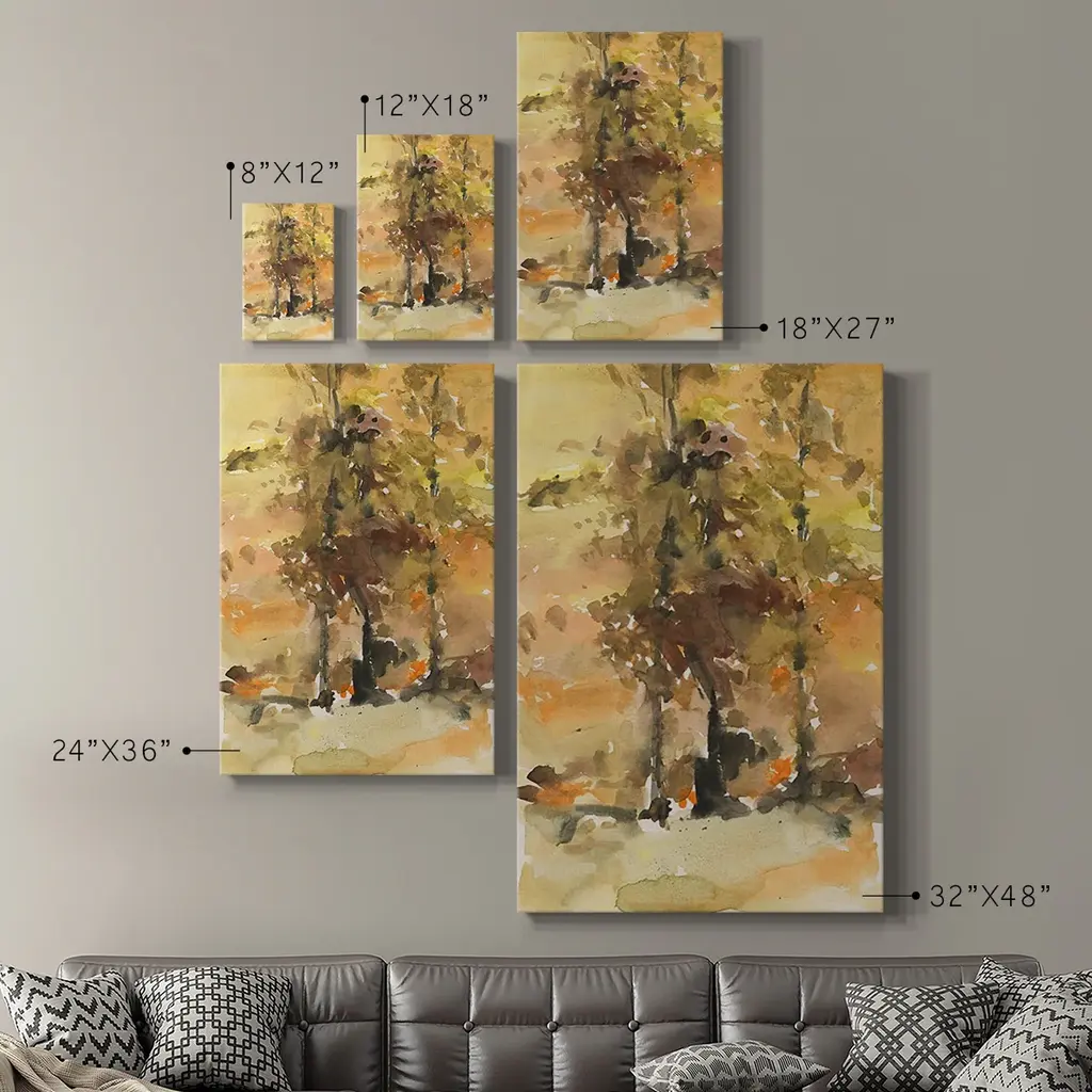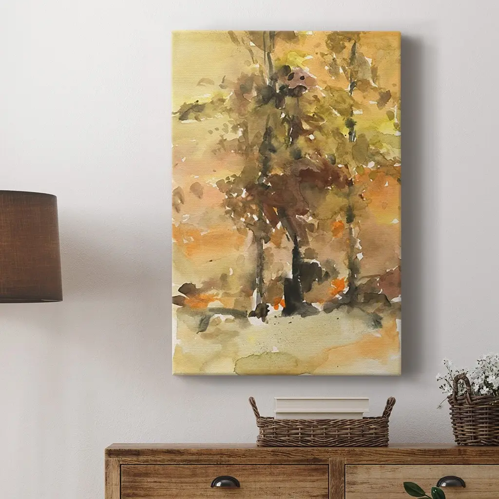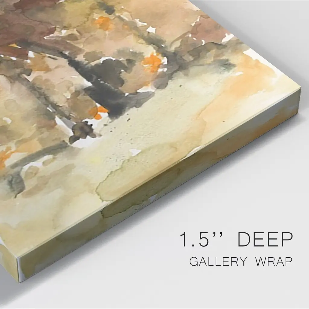 Fall Foliage Watercolor I Premium Gallery Wrapped Canvas - Ready to Hang A premium hand stretched gallery wrapped canvas print created to last. Featuring a beveled a solid wood stretcher bar, each piece comes ready to hand 6 SIZES AVAILABLE 8''X12'' - Overall Size 12''X18'' - Overall Size 18''X27'' - Overall Size 24''x36'' - Overall Size 32''x48'' - Overall Size 40''x60'' - Overall Size Each piece is made to order. Built to Last Each piece comes ready to hang Solid wood stretcher Fade and Water resistant Made domestically