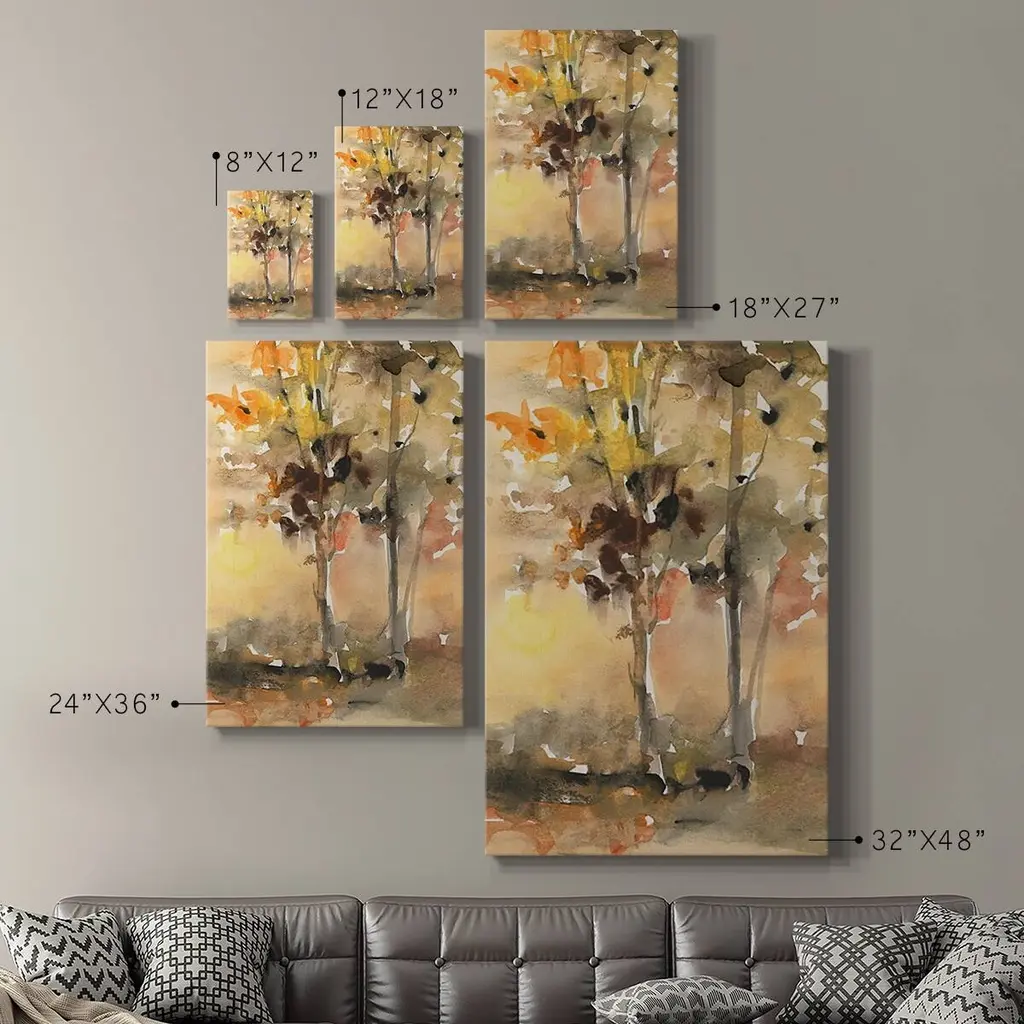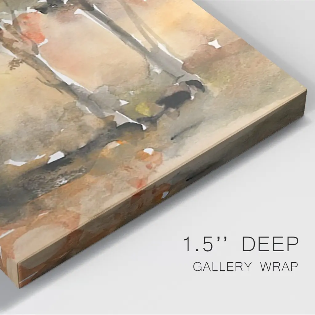 Fall Foliage Watercolor II Premium Gallery Wrapped Canvas - Ready to Hang A premium hand stretched gallery wrapped canvas print created to last. Featuring a beveled a solid wood stretcher bar, each piece comes ready to hand 6 SIZES AVAILABLE 8''X12'' - Overall Size 12''X18'' - Overall Size 18''X27'' - Overall Size 24''x36'' - Overall Size 32''x48'' - Overall Size 40''x60'' - Overall Size Each piece is made to order. Built to Last Each piece comes ready to hang Solid wood stretcher Fade and Water resistant Made domestically