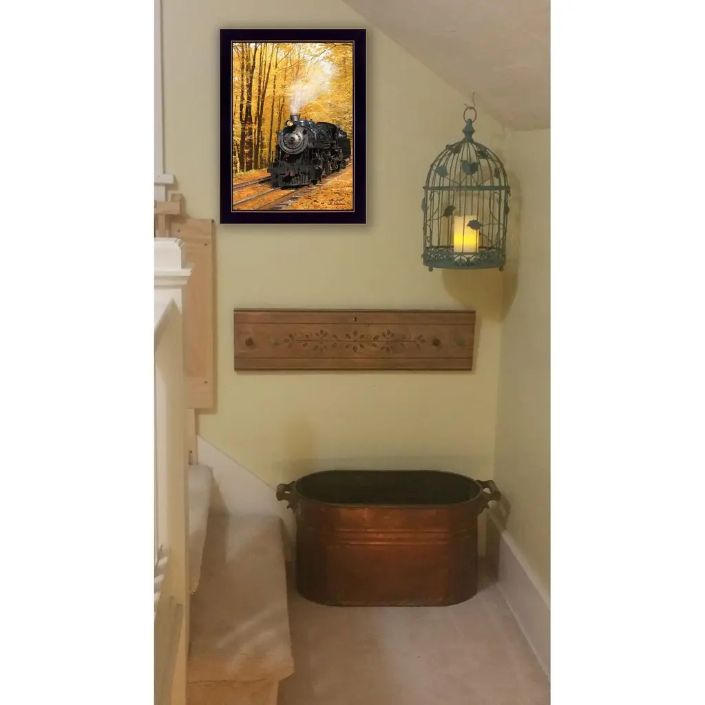 This fall locomotive black framed print wall art will add a beautiful decorative accent to your decor. This transportation inspired wall art features a train icon and will bring a refreshing look and perspective to your walls. This print is a visual artistic expression that allows you to decorate your space in style. Reproduced for you on paper, this hanging decorative accent will be a trendy and fashionable way to dress your walls. Hang on your wall to add some up to date fashion and decoration. Instantly liven up your space with this art that brings color and dimension to your walls. 20" H x 14" W x 1" D