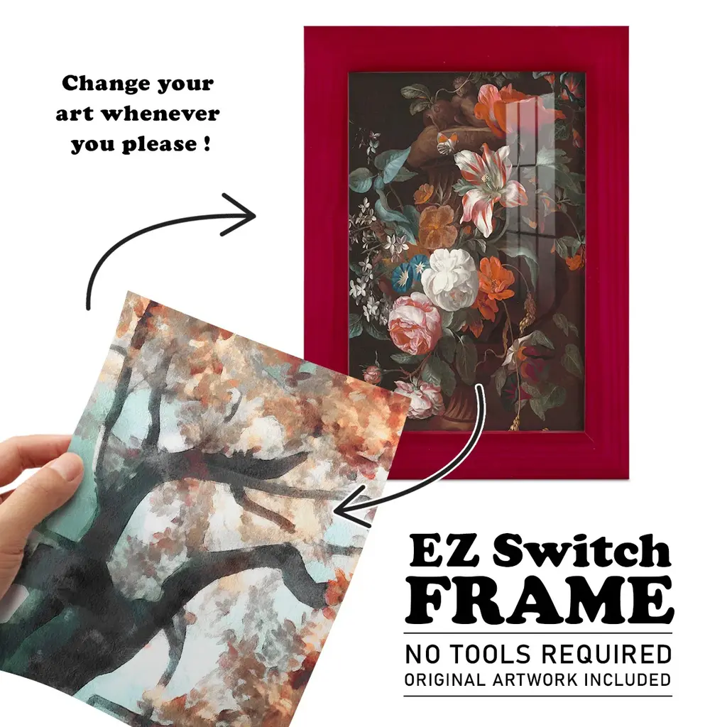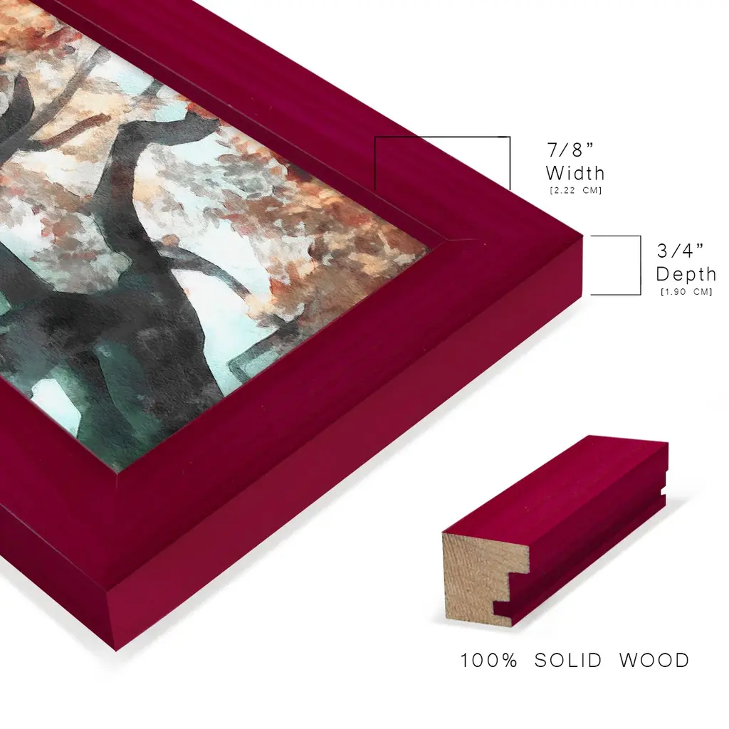 Fall Tree I -EZ SWITCH Framed Print w/glass-Cherry Red A delightful, framed print. Featuring a solid wood frame with real wood glass. This premium print is giclee quality. In addition, every frame features a removable back and table top stand. This allows you to change your art in the future or to just stand the art on a table for a new look. We are sure you'll enjoy our new series of EZ SWITCH Framed Art. Solid Wood Frame Real Glass Removable / Replaceable Art Built in Tabletop Stand Sizes range from 4x6 up to 12x15 - buy just one or pair them up as sets as you see fit.