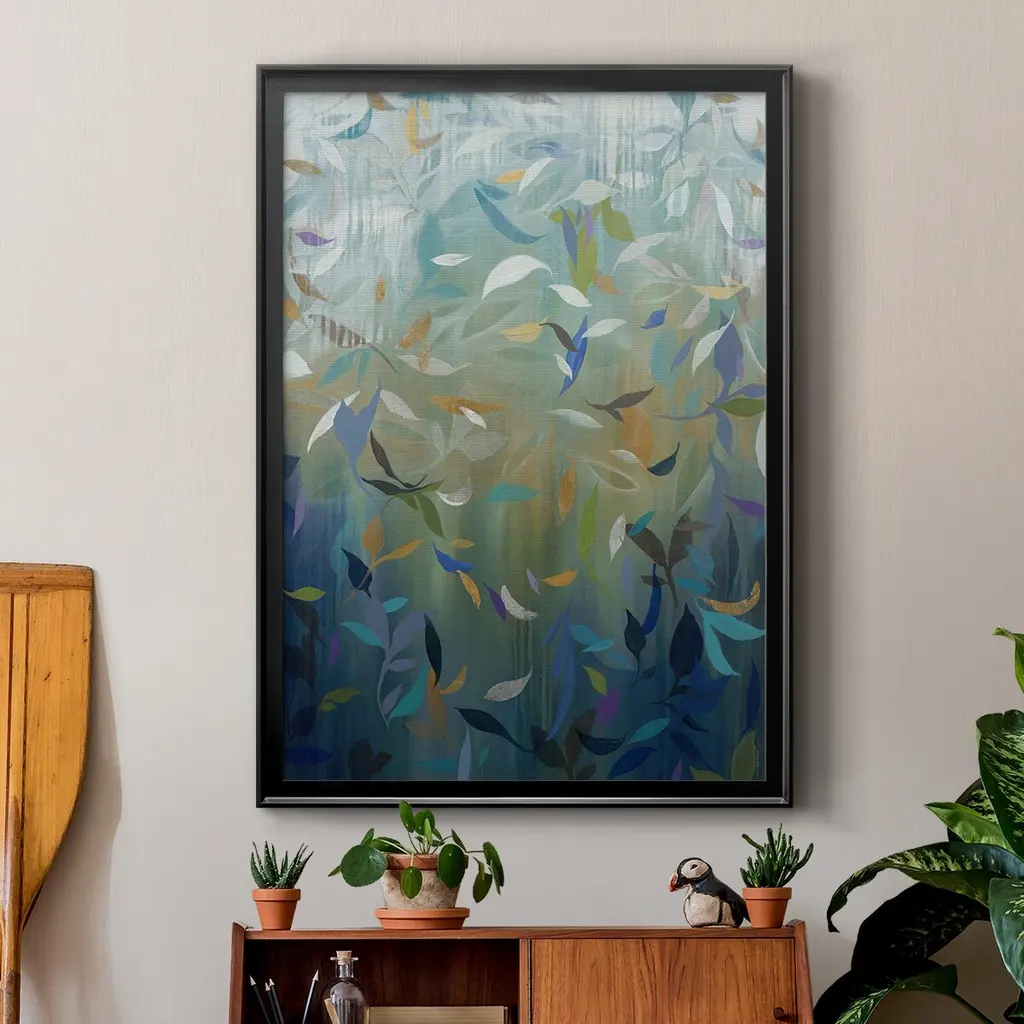 Falling Leaves Premium Framed Print - Ready to Hang A Premium Framed Print created to last. Framed in distressed wood and available in an array of sizes and colors Featuring a beveled a solid wood stretcher bar, each piece comes ready to hand 4 SIZES AVAILABLE 30.5''X42.5'' - Overall Size 26.5'X36.5'' - Overall Size 22.5''x30.5'' - Overall Size 18.5''x24.5'' - Overall Size Each piece is made to order. Each piece comes with hanging hardware. Made in the USA Ready to Hang