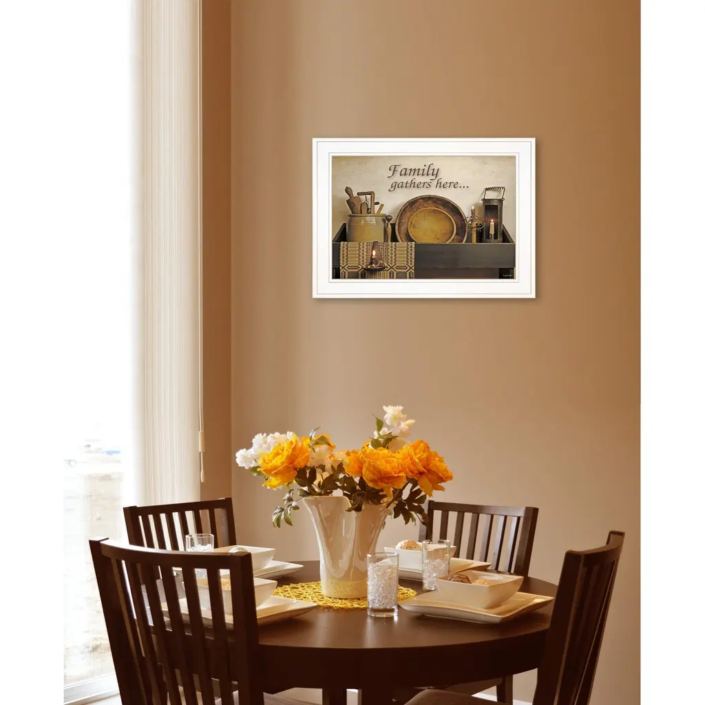 Add an air of fashion to your room and rejuvenate the space with this family gather here 2 white framed print wall art. This print is a visual artistic expression that allows you to decorate your space in style. Reproduced for you on paper, this hanging decorative accent will be a trendy and fashionable way to dress your walls. Hang on your wall to add some up to date fashion and decoration. Utilize this opportunity to create a focal point in the room with this fabulous wall decor option. 15" H x 19" W x 1" D