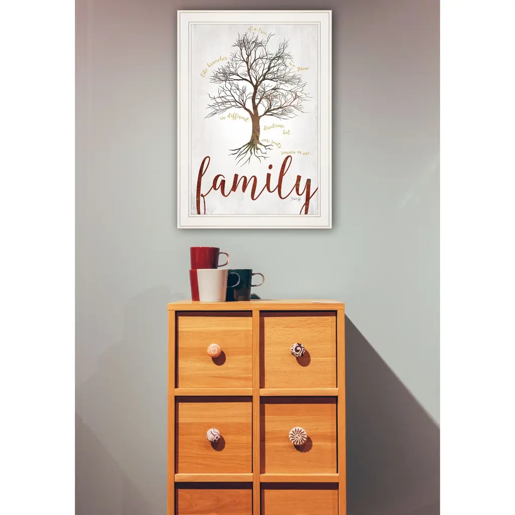 Unique and decorative, this family tree 1 white framed print wall art will leave a lasting impression. This print is a visual artistic expression that allows you to decorate your space in style. Reproduced for you on paper, this hanging decorative accent will be a trendy and fashionable way to dress your walls. Hang on your wall to add some up to date fashion and decoration. Utilize this opportunity to create a focal point in the room with this fabulous wall decor option. 21" H x 15" W x 1" D