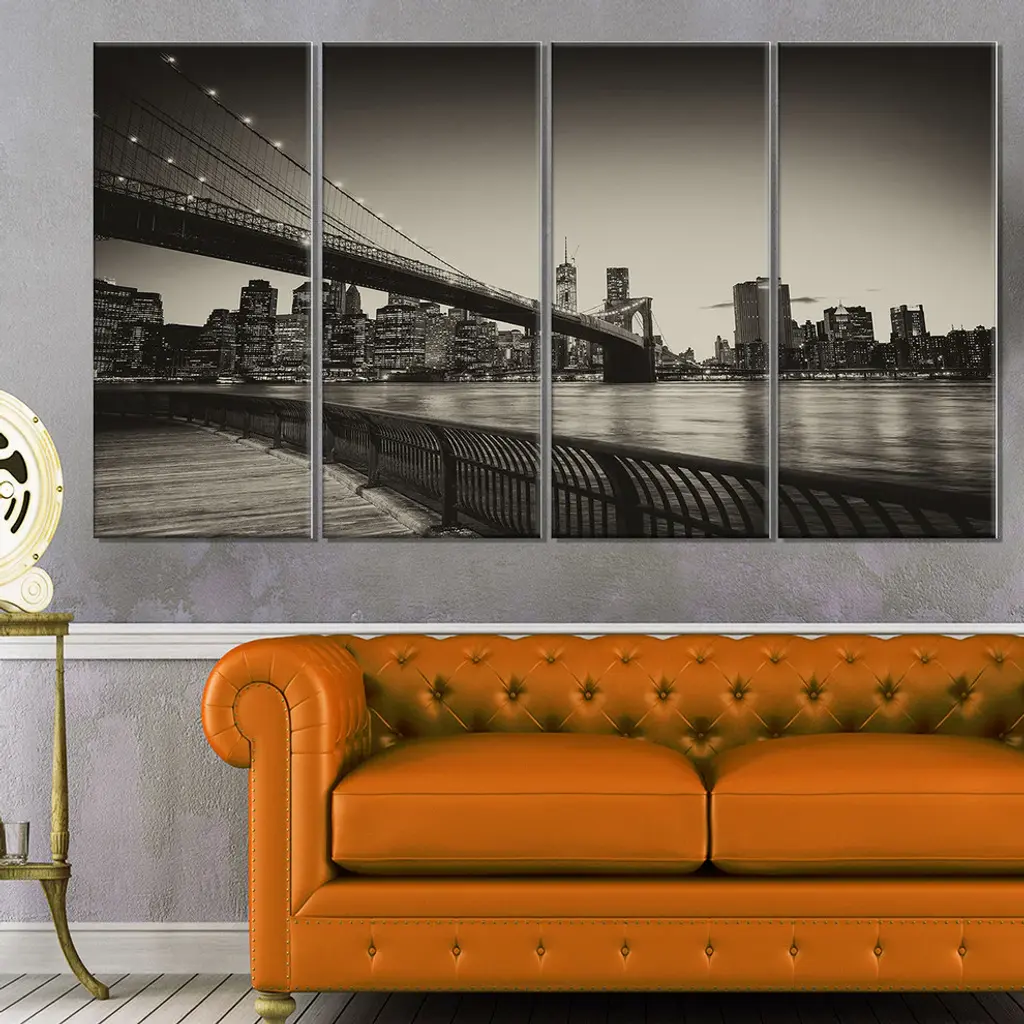 "Famous Landmark Of Brooklyn Bridge" Canvas Print48"x28", 4-Panels