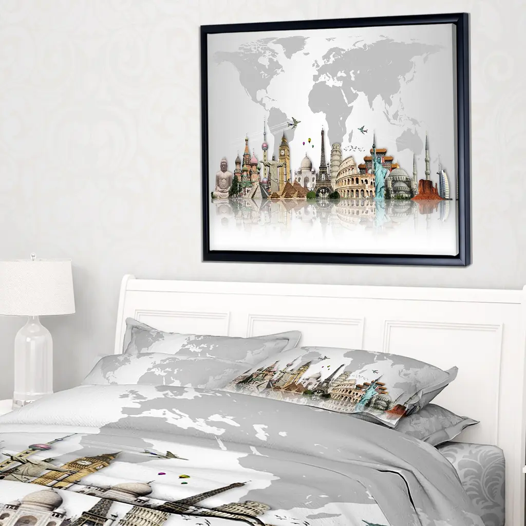 Bring contemporary abstraction to your home with this large 36W x 28H Metal Wall Art. This Famous Monuments Across World Metal Artwork makes it the focal point of any room or office. - White gloss coating ensures colors are extra vibrant with light reflection.- Aluminum grade sheet metal with 1-inch mounting frame on the back giving the illusion that the artwork is floating on the wall.- Mounting brackets are included along with instructions.- High quality digital images are created directly into a glossy aluminum panel producing a stunning and captivating print into the glossy finish of the metal.- Water, fire and scratch resistant HD aluminum panels.- Looks better than any photo paper and guaranteed to last at least 20 years- Easy to clean with a microfiber cloth. Colors are far superior to regular canvas art. - Easy to hang