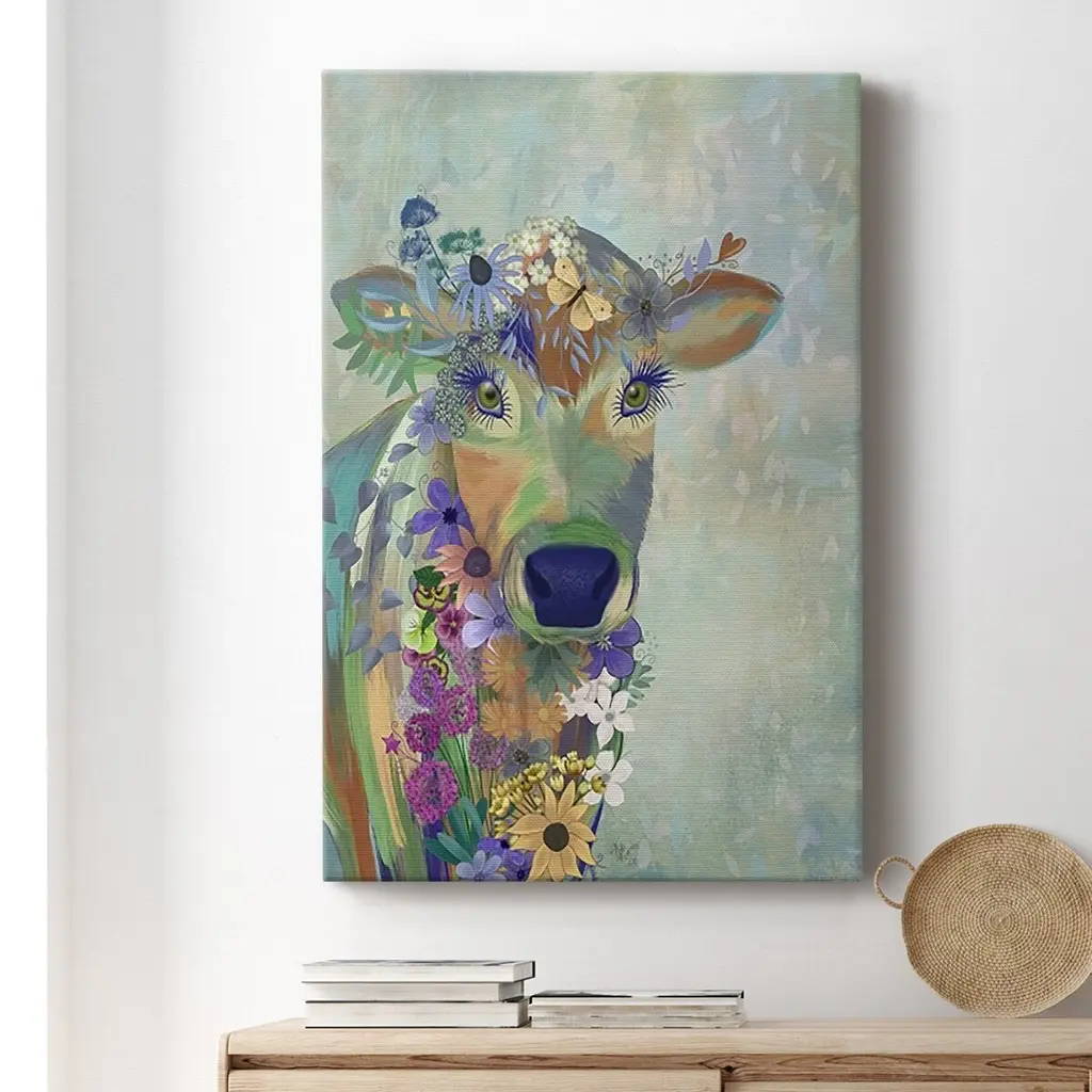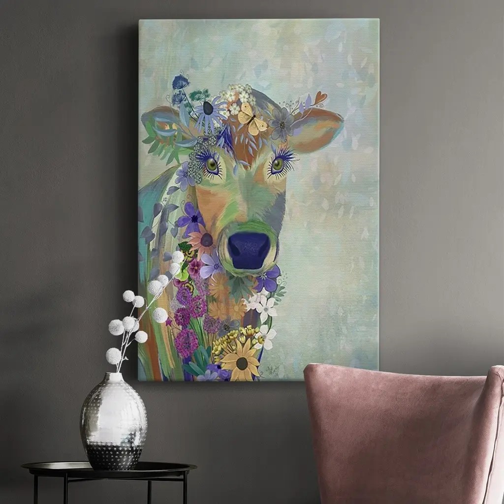 Fantastic Florals Cow Premium Gallery Wrapped Canvas - Ready to Hang A premium hand stretched gallery wrapped canvas print created to last. Featuring a beveled a solid wood stretcher bar, each piece comes ready to hand 6 SIZES AVAILABLE 8''X12'' - Overall Size 12''X18'' - Overall Size 18''X27'' - Overall Size 24''x36'' - Overall Size 32''x48'' - Overall Size 40''x60'' - Overall Size Each piece is made to order. Built to Last Each piece comes ready to hang Solid wood stretcher Fade and Water resistant Made domestically