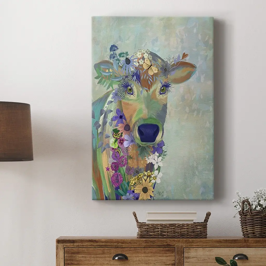 Fantastic Florals Cow Premium Gallery Wrapped Canvas - Ready To Hang - 40x60