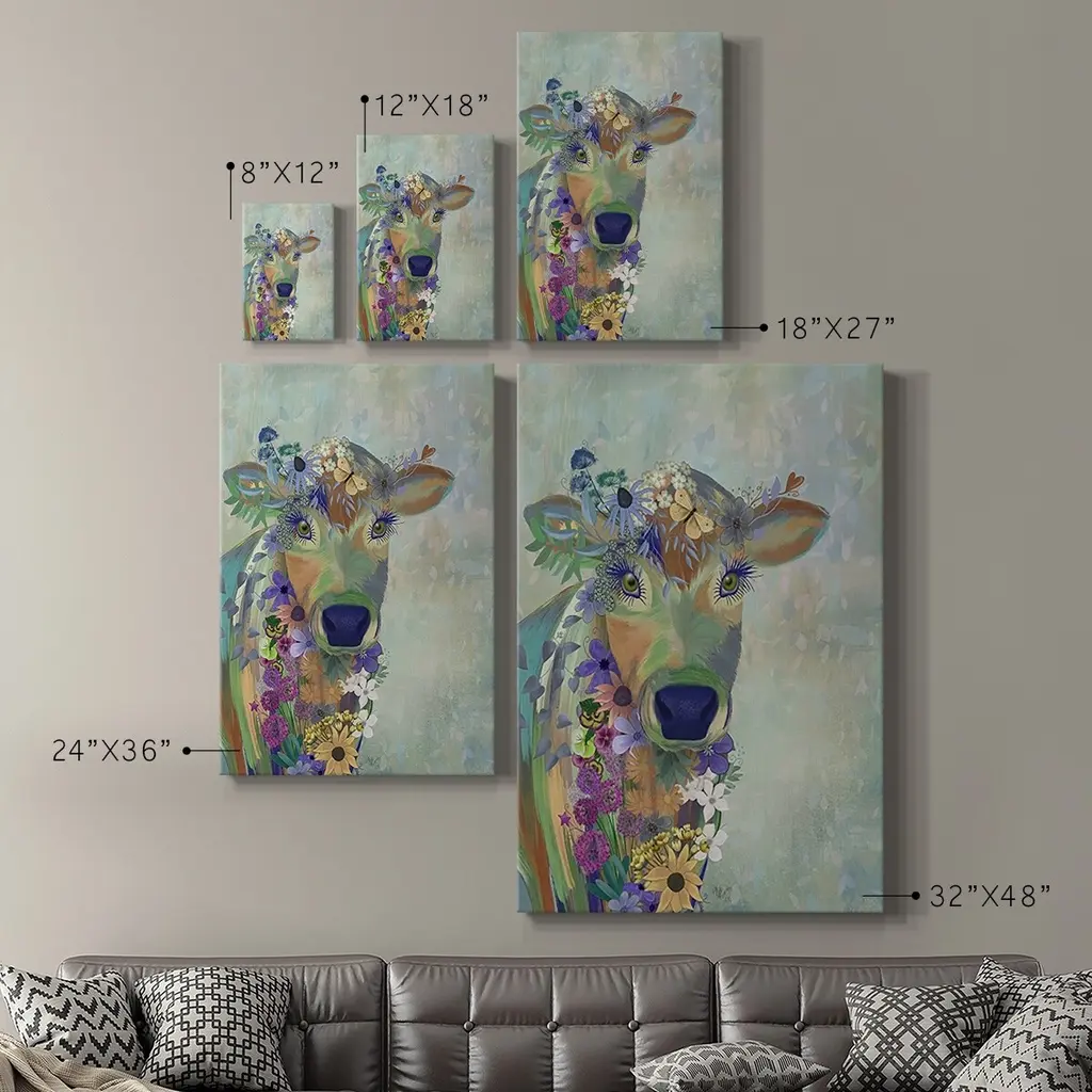 Fantastic Florals Cow Premium Gallery Wrapped Canvas - Ready to Hang A premium hand stretched gallery wrapped canvas print created to last. Featuring a beveled a solid wood stretcher bar, each piece comes ready to hand 6 SIZES AVAILABLE 8''X12'' - Overall Size 12''X18'' - Overall Size 18''X27'' - Overall Size 24''x36'' - Overall Size 32''x48'' - Overall Size 40''x60'' - Overall Size Each piece is made to order. Built to Last Each piece comes ready to hang Solid wood stretcher Fade and Water resistant Made domestically